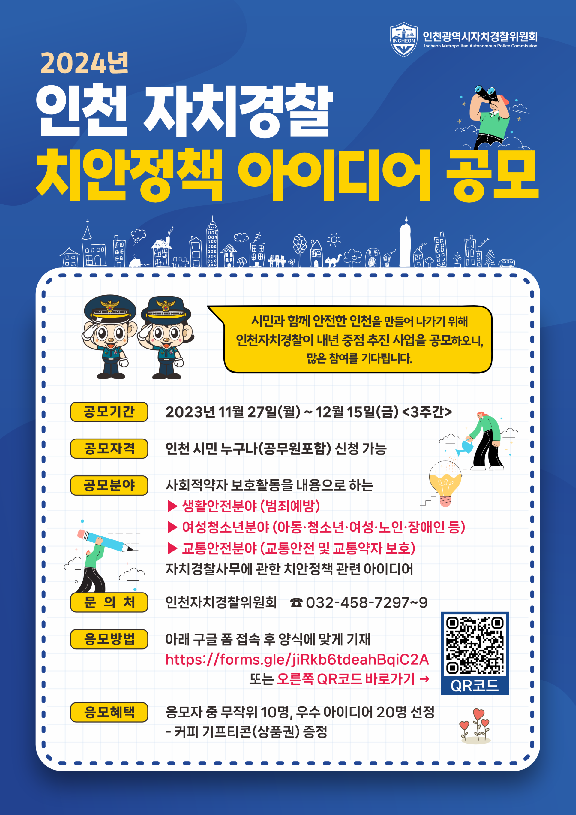 - 2024년 인천 자치경찰 치안정책 아이디어 공모전을 개최하오니
