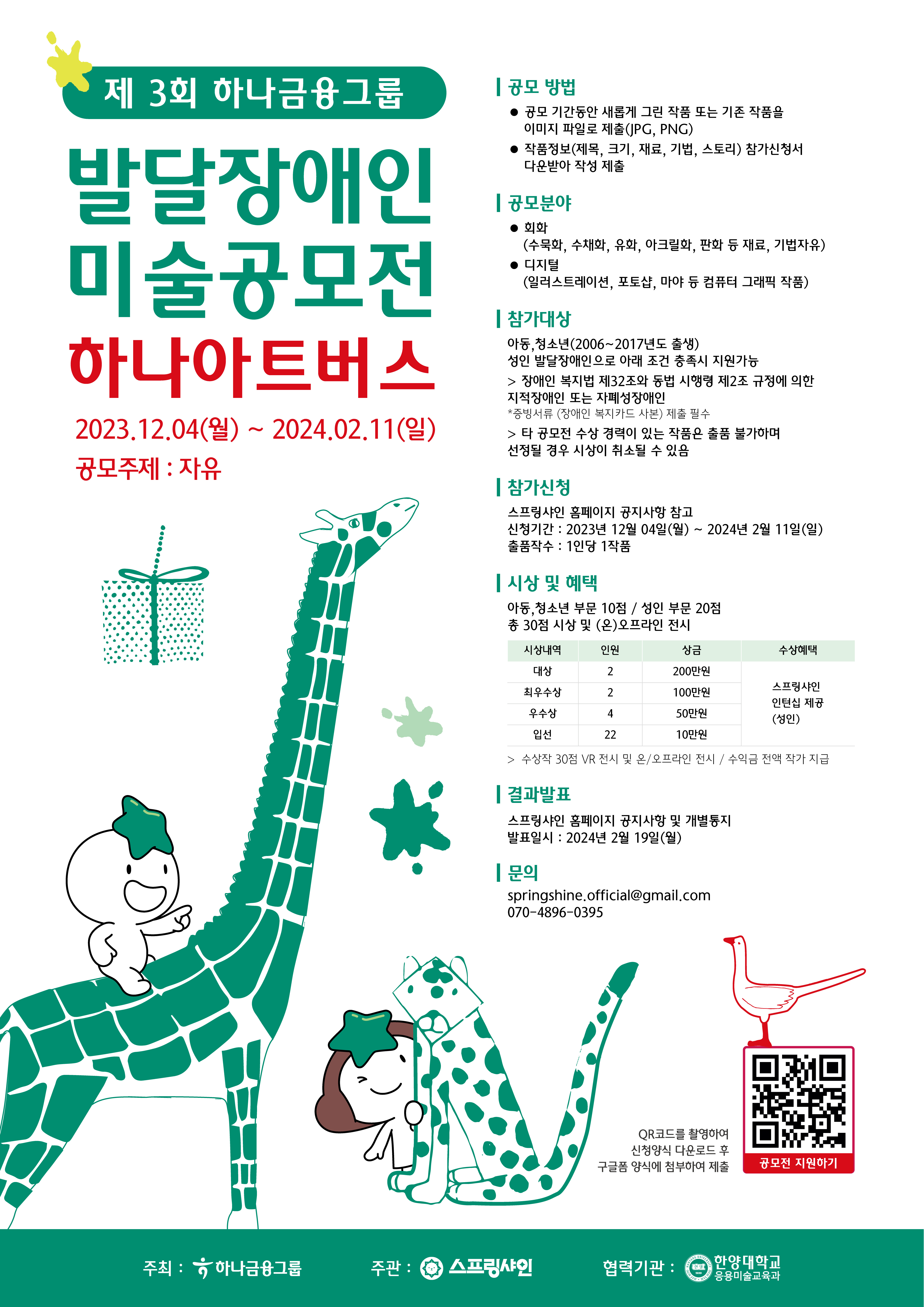 - 제 3회 하나금융그룹 발달장애인 미술공모전 <하나아트버스>를