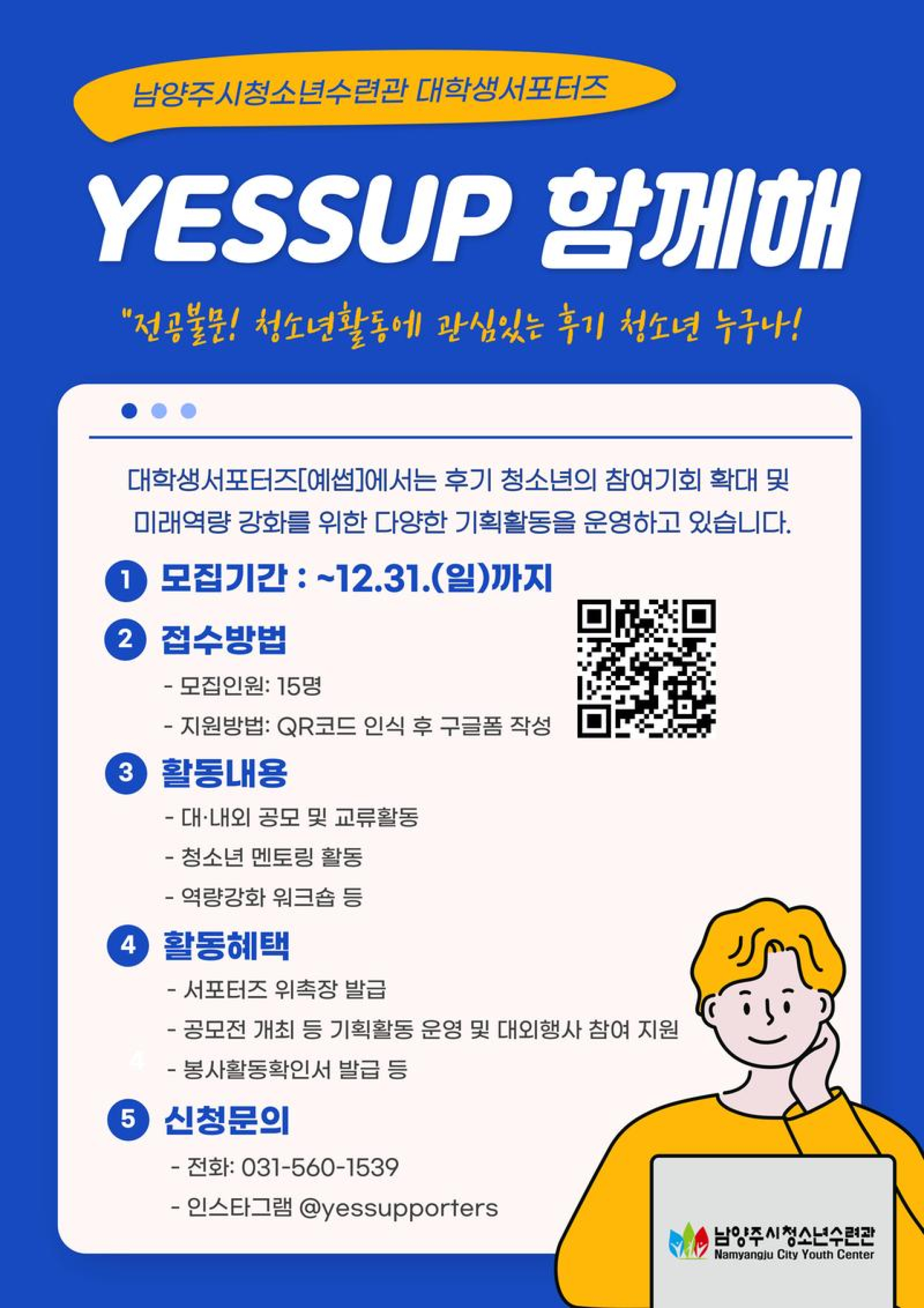 2024년 남양주시청소년수련관 대학생서포터즈 'YESSUP' 6기 모집