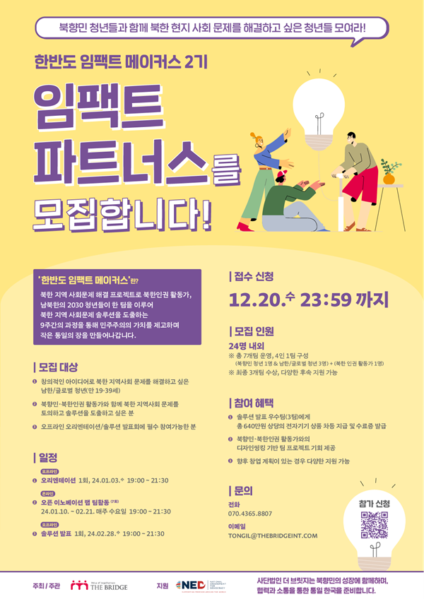- 한반도 임팩트 메이커스 2기의 임팩트 파트너스(남한/글로벌 청년)를
