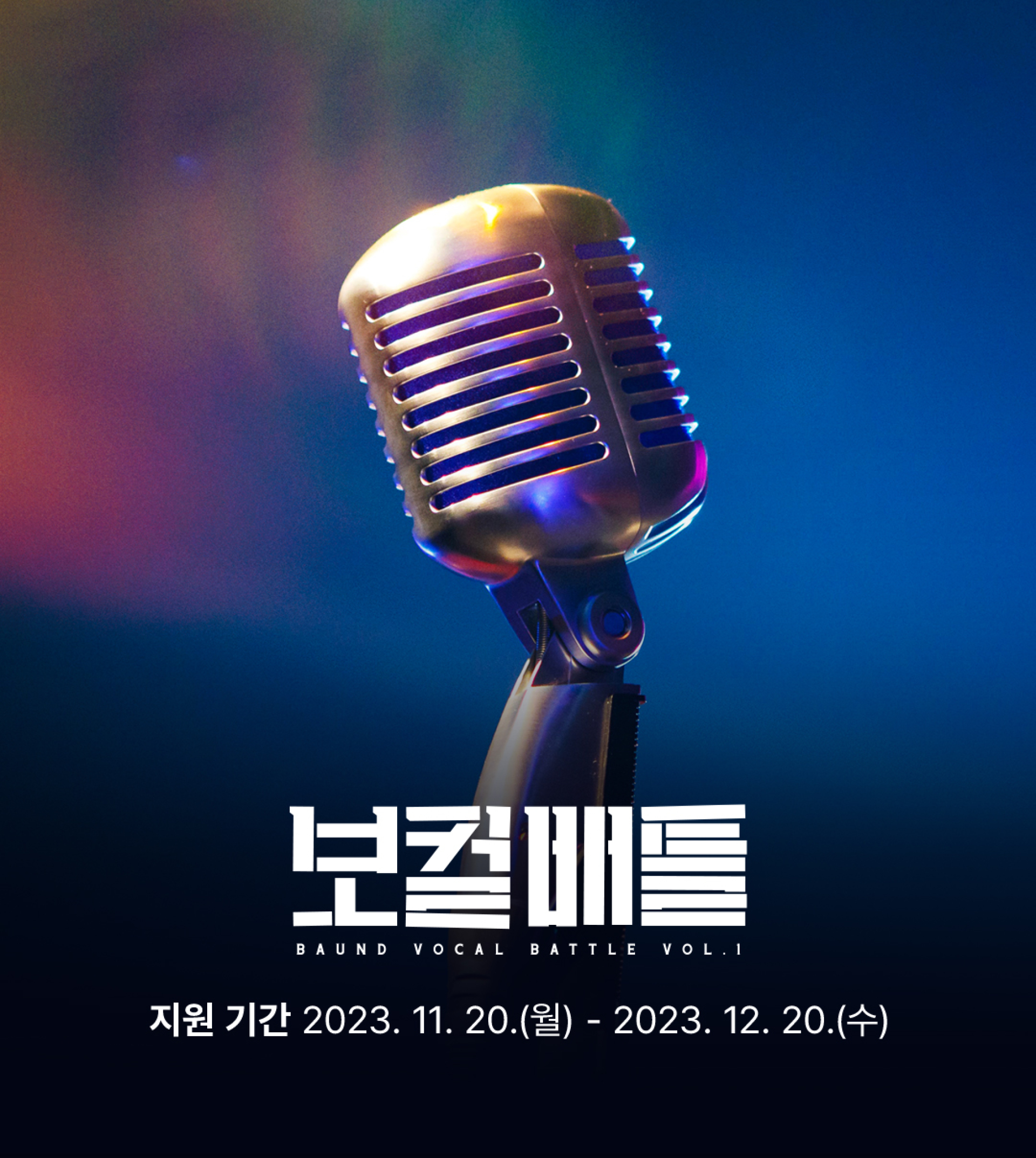 - Baund 앱에서 #바운드보컬배틀 해시태그와 함께