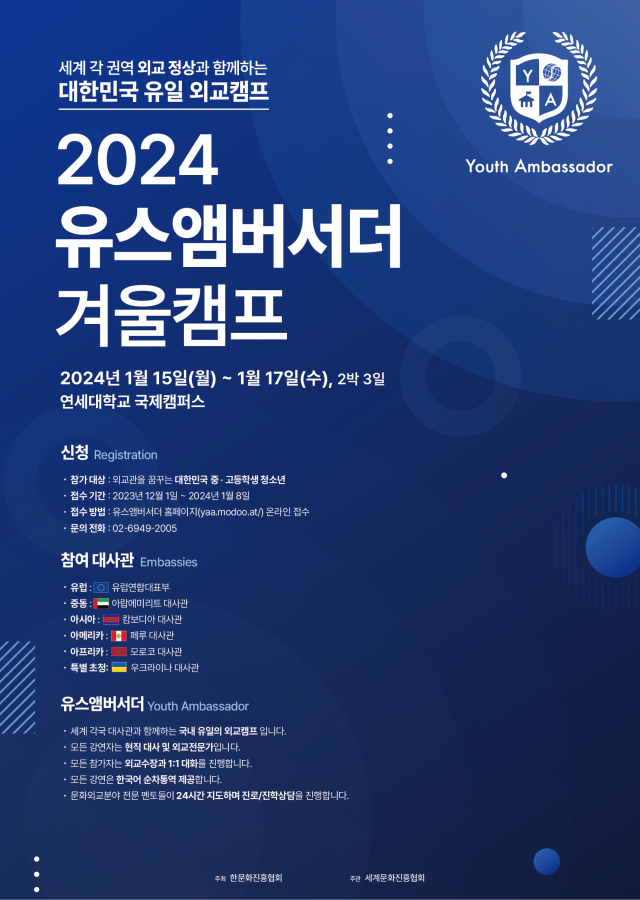 - 세계 각국의 외교수장과 직접 교류하는 국내 유일의 외교캠프!