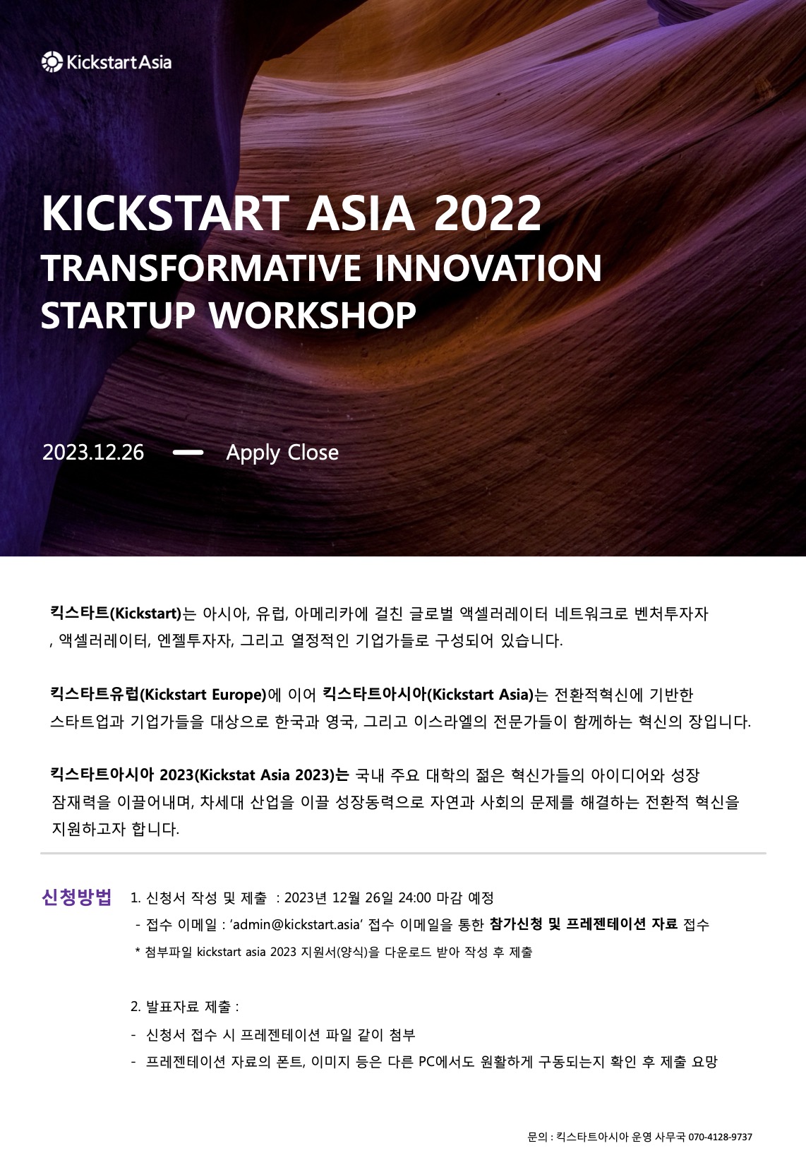 - ☏ Tel : 070-4128-9737 (킥스타트아시아 2023 운영사무국)