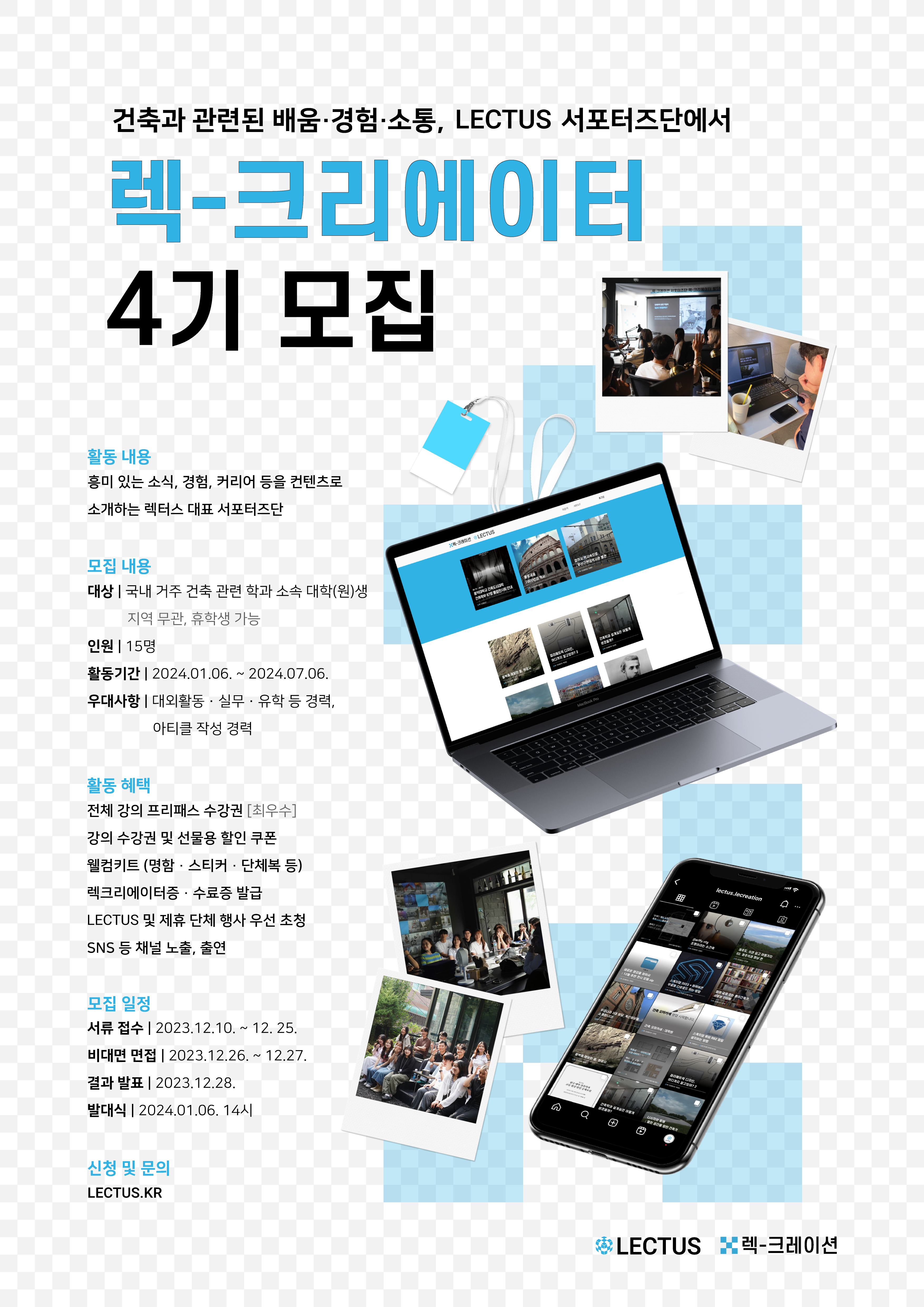 LECTUS는 지난 2020년 부터 건축 관련 분야 학생 분들의 창작활동지원을 위해
