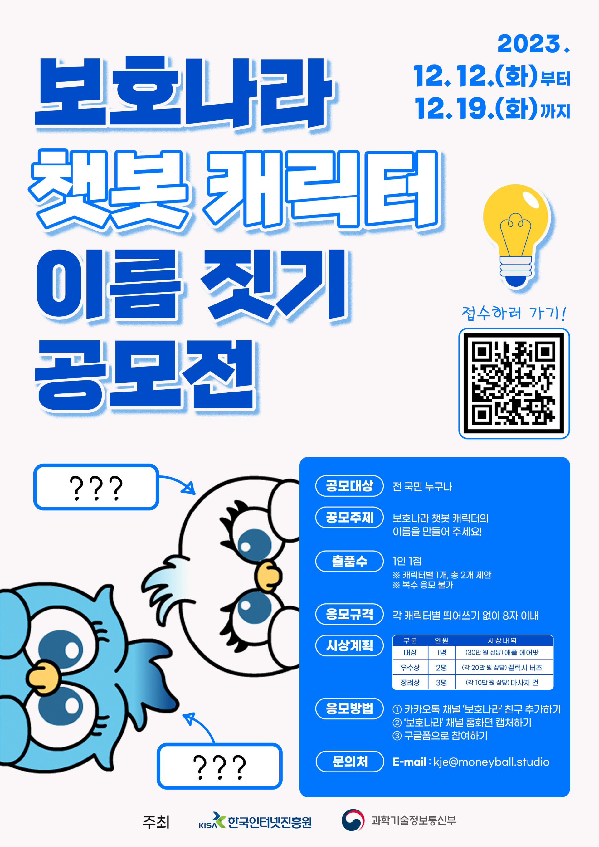 보호나라 챗봇 캐릭터 이름 짓기 공모전