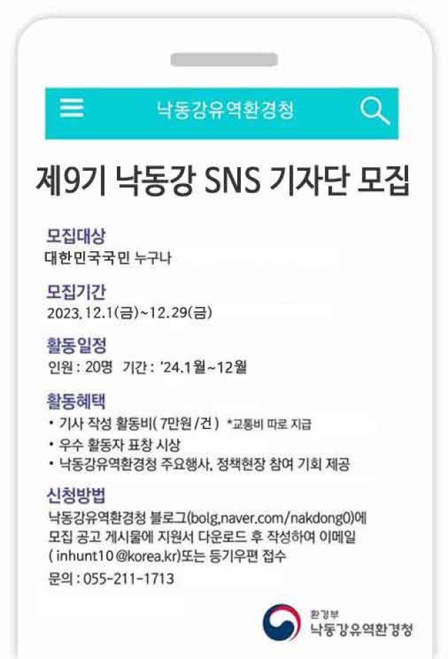 아래와 같이「제9기 낙동강 SNS 기자단」을