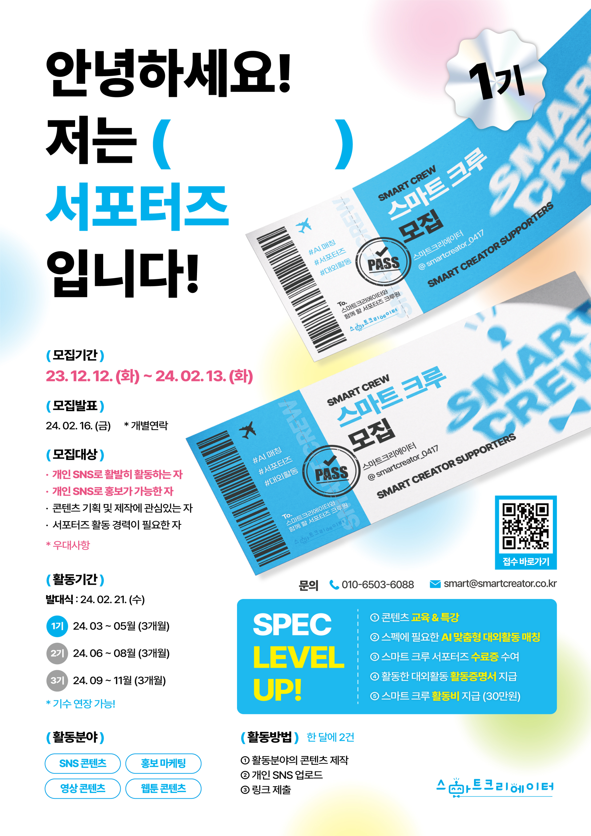 스마트크리에이터 서포터즈 스마트 크루 1기 모집