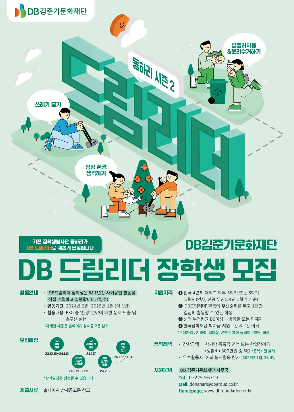 - 2024년 DB김준기문화재단 장학생 <DB드림리더>를 모집하오니