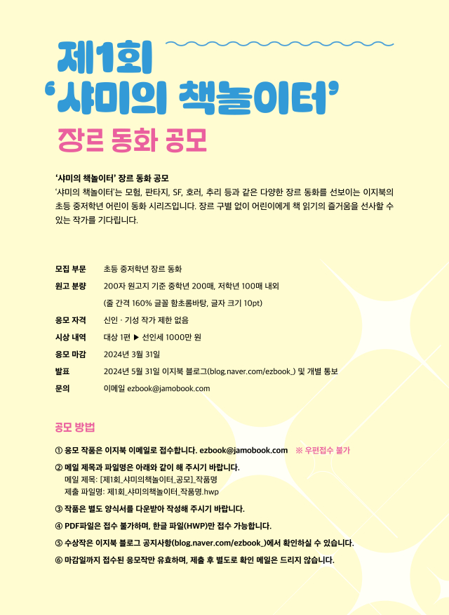 2024 제1회 이지북 샤미의 책놀이터 장르동화 공모전