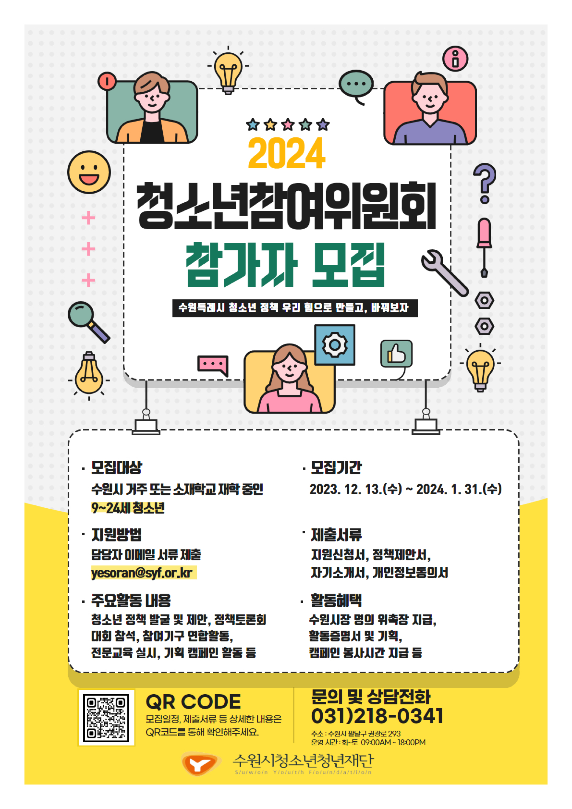 - 수원시 청소년 정책에 관심이 있는 청소년