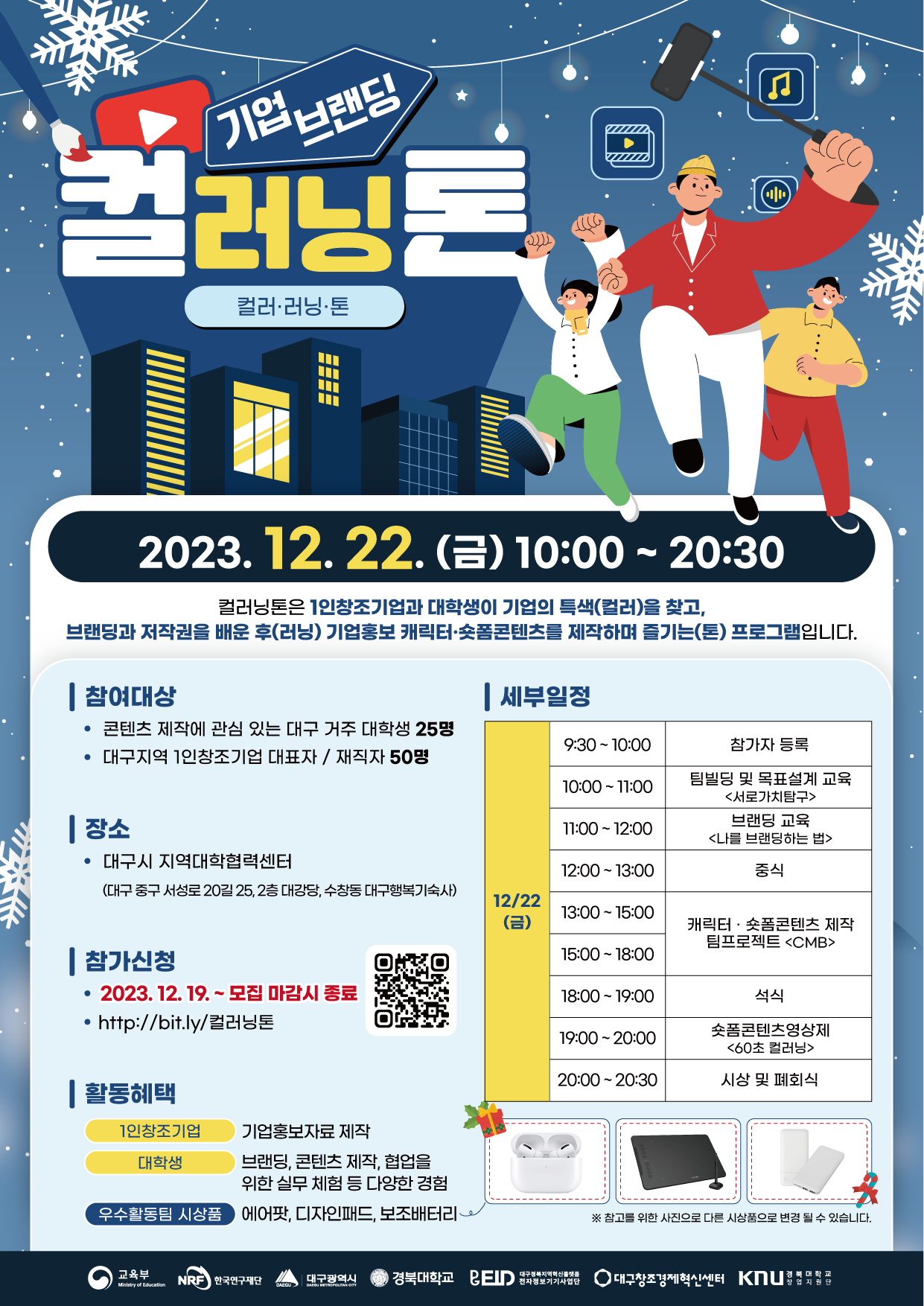 - 행사일시 : 23. 12. 22.(금) 9:30 ~20:30 (단, 1일! 진행)