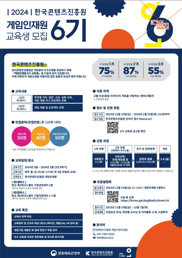 2024년 한국콘텐츠진흥원 게임인재원 6기 교육생 모집