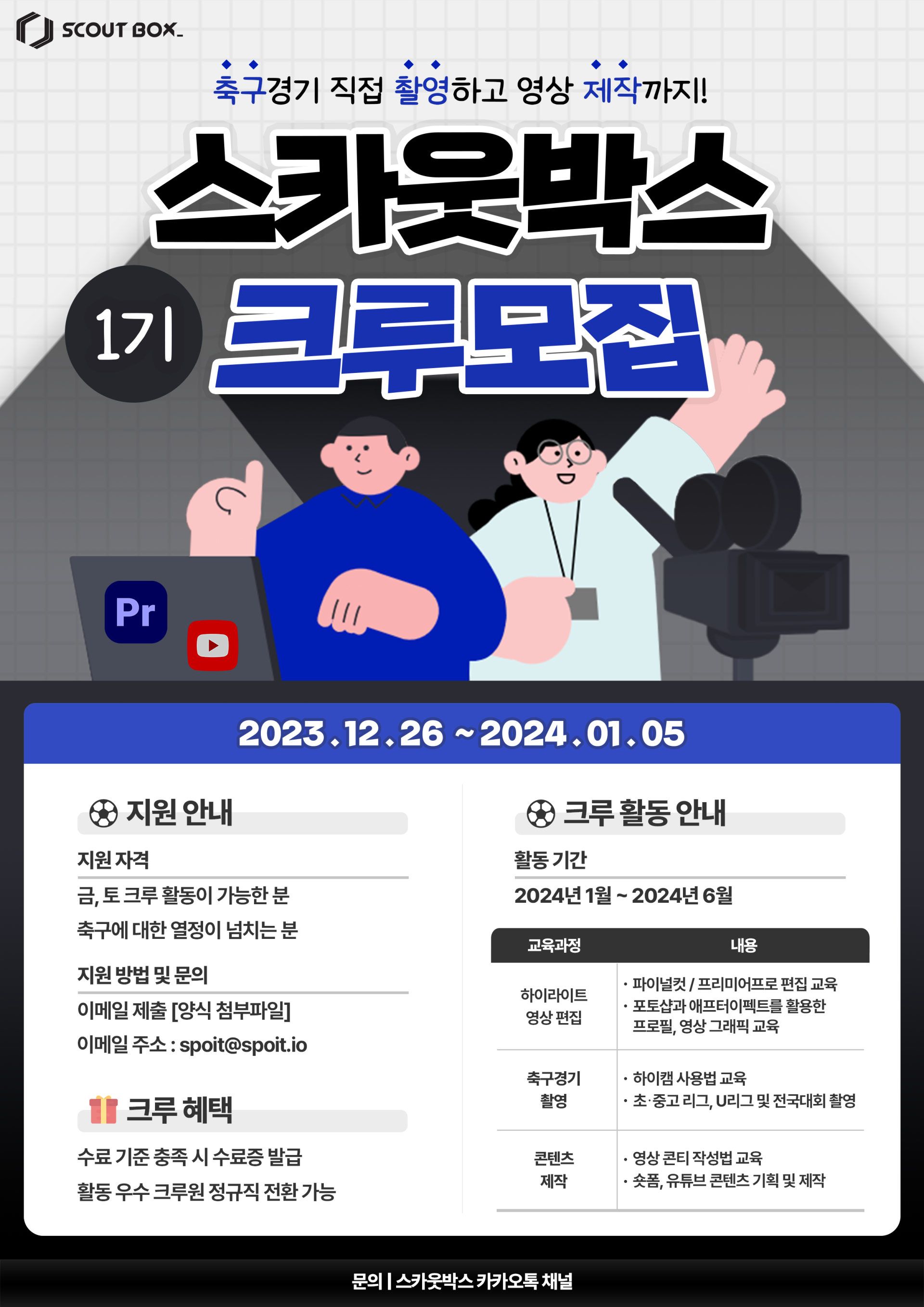 - 스포츠 대외활동 스카웃박스(scout box)의 공식 1기 크루를 모집합니다.