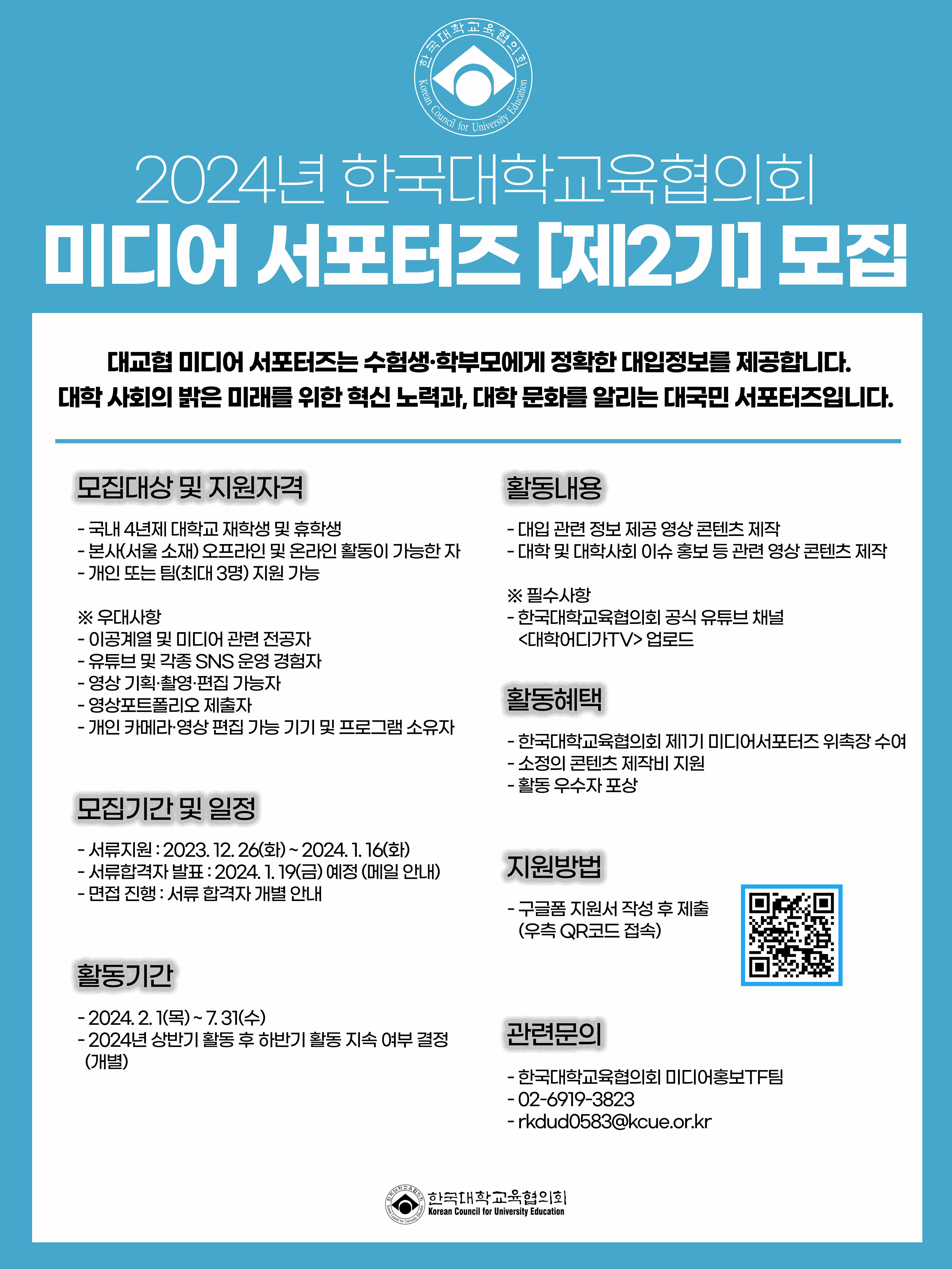 2024년 한국대학교육협의회 미디어 서포터즈 제2기 모집