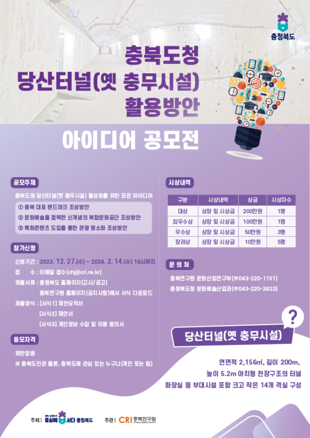 충북도청 당산터널(옛 충무시설) 활용방안 아이디어 공모