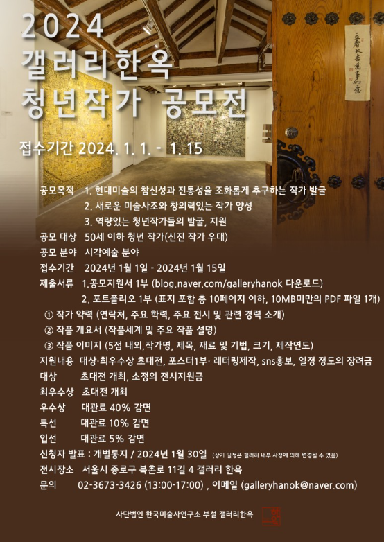 2024년 제4회 갤러리한옥 청년작가 공모전