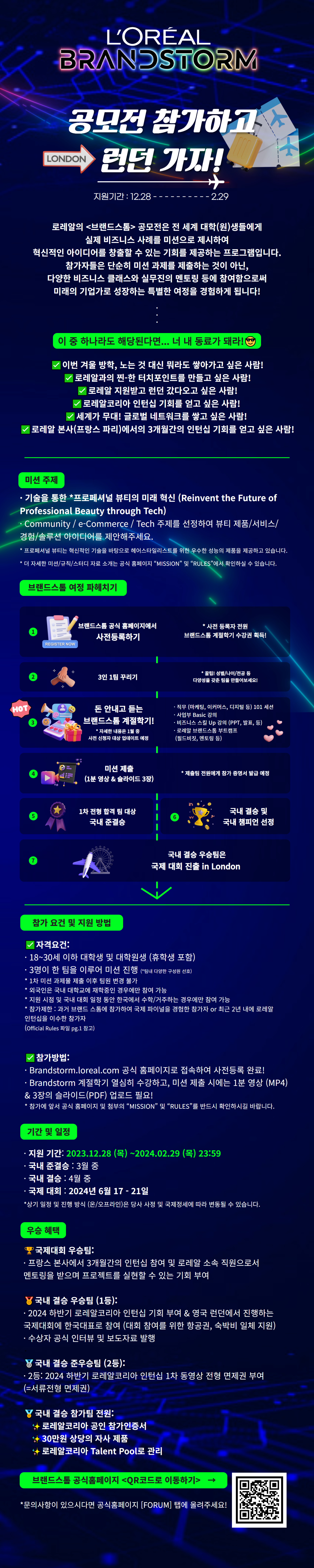 * 2024 하반기 로레알코리아 인턴십 기회 부여 & 영국 런던에서 진행하는