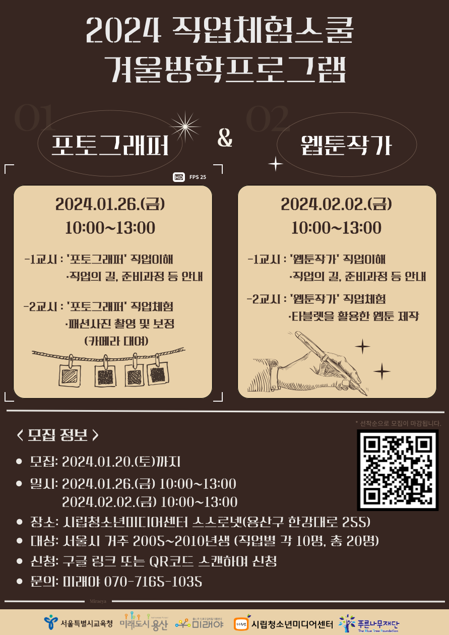 - 2024 미래야 직업체험스쿨 겨울방학프로그램의 참여자를 모집하오니