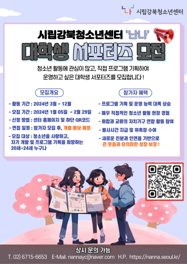 시립강북청소년센터 2024년 난나 대학생 서포터즈 공개 모집