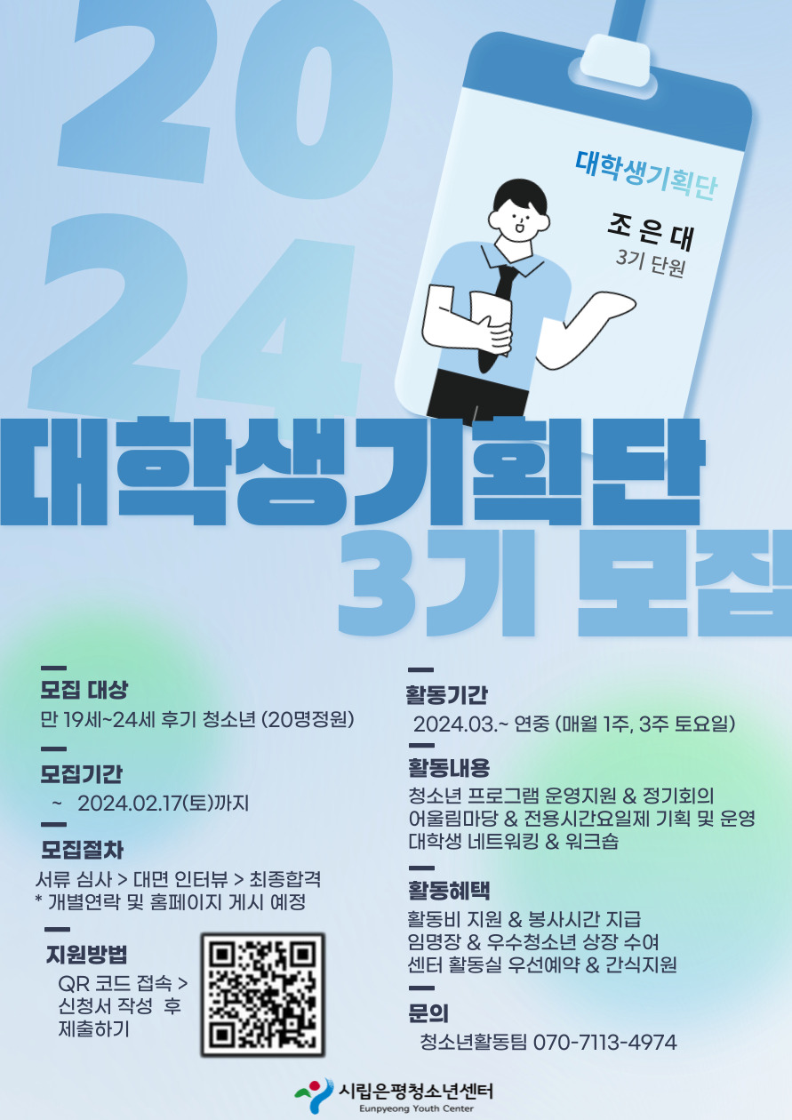 2024 시립은평청소년센터 대학생기획단 3기 모집