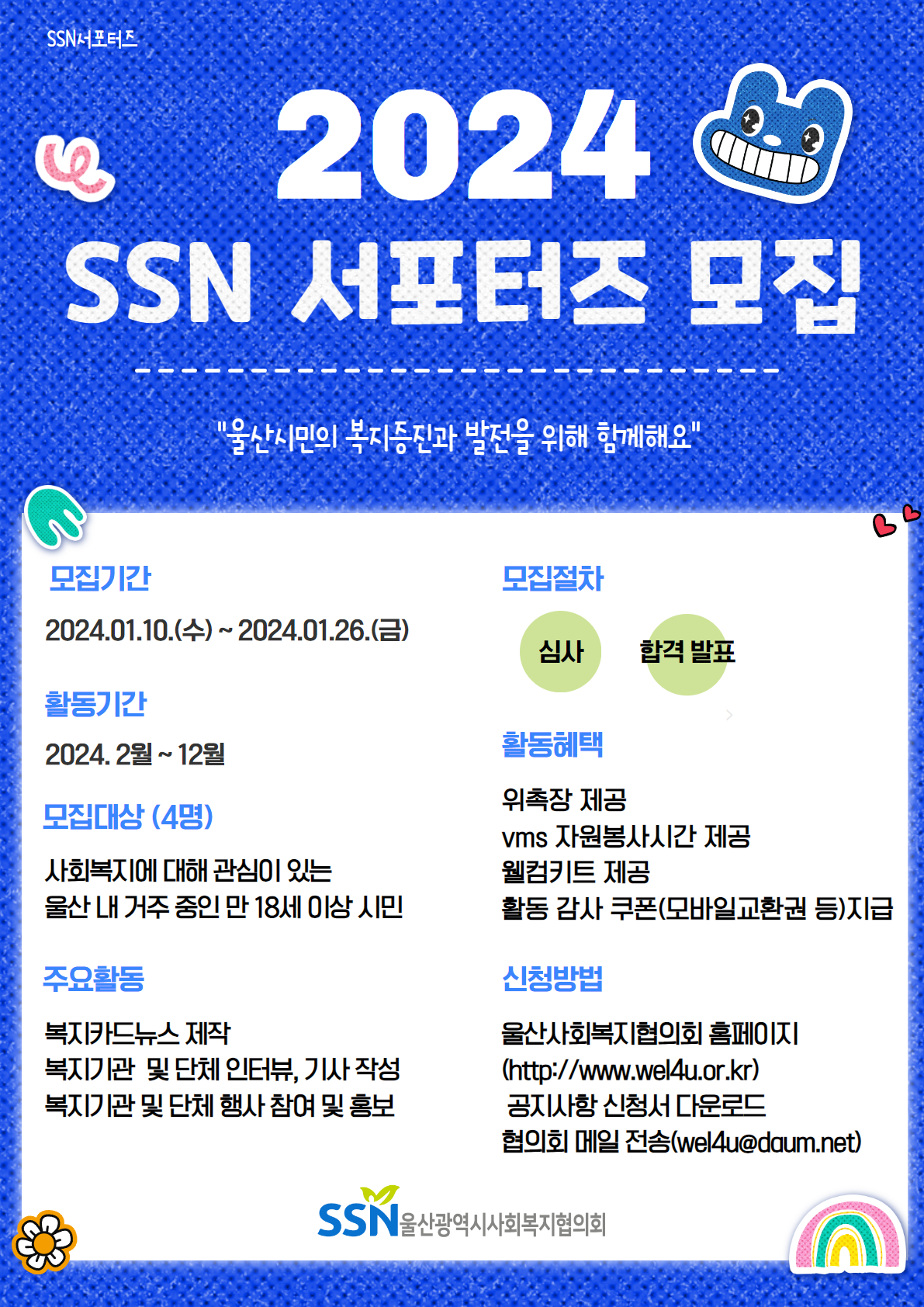 - 2024년 울산사회복지협의회 SSN 서포터즈를 모집하오니