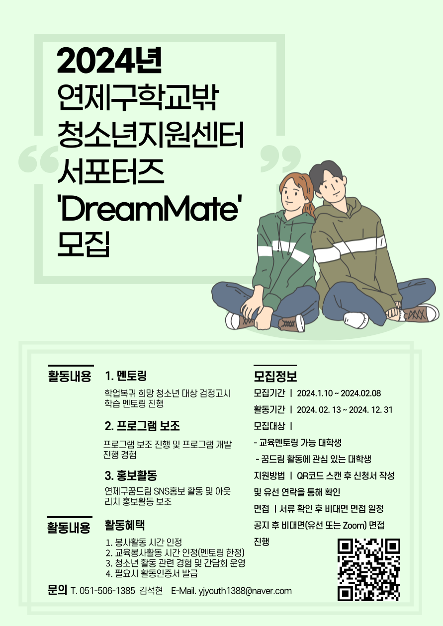 2024년 연제구학교밖청소년지원센터 서포터즈 'DreamMate' 모집