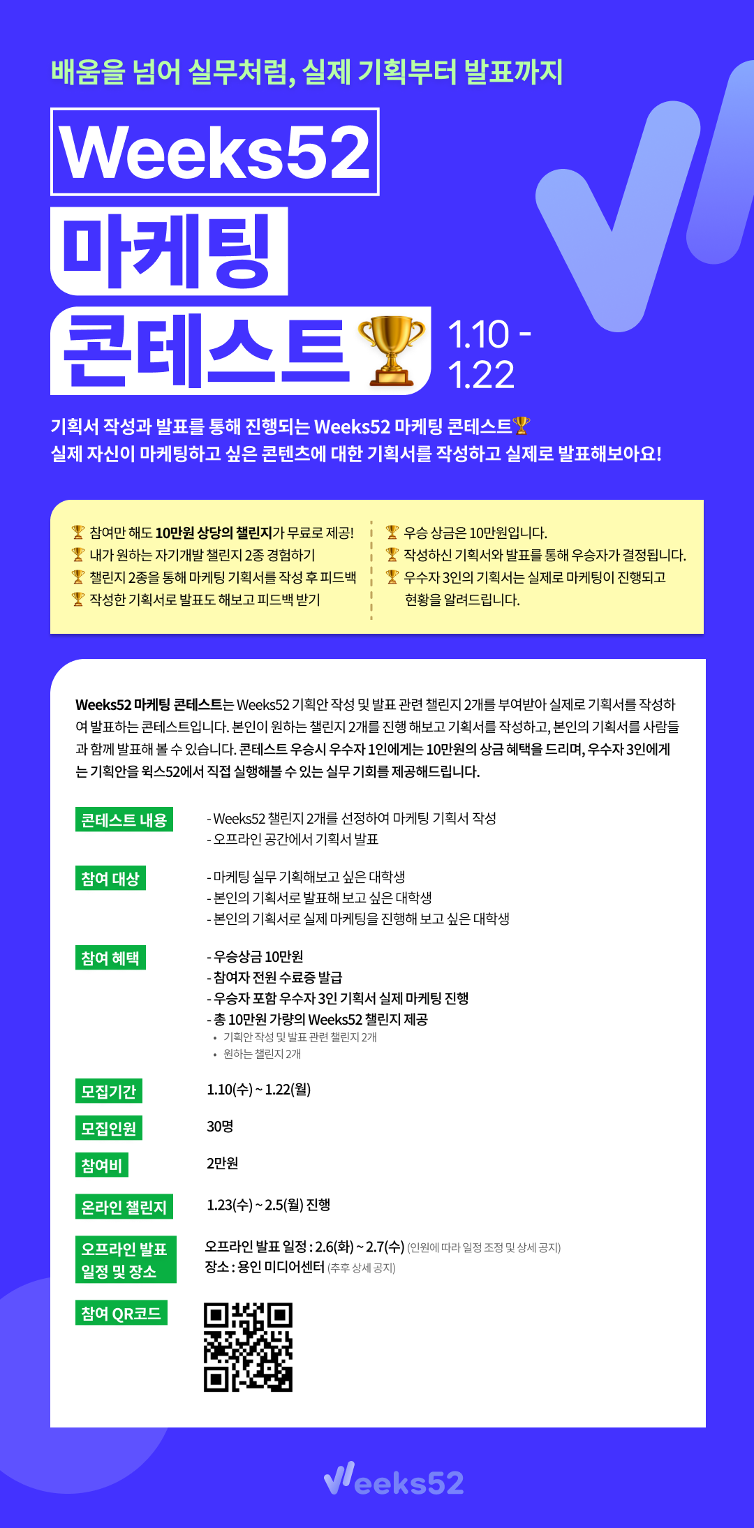 기획서 작성과 발표를 통해 진행되는 Weeks52 마케팅 콘테스트!