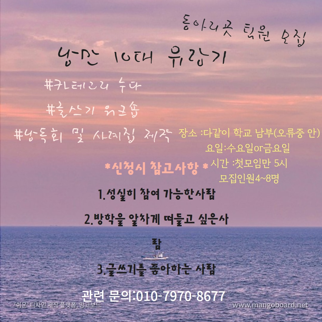 - 다가치학교 낭만 10대 유랑기에 참여하실