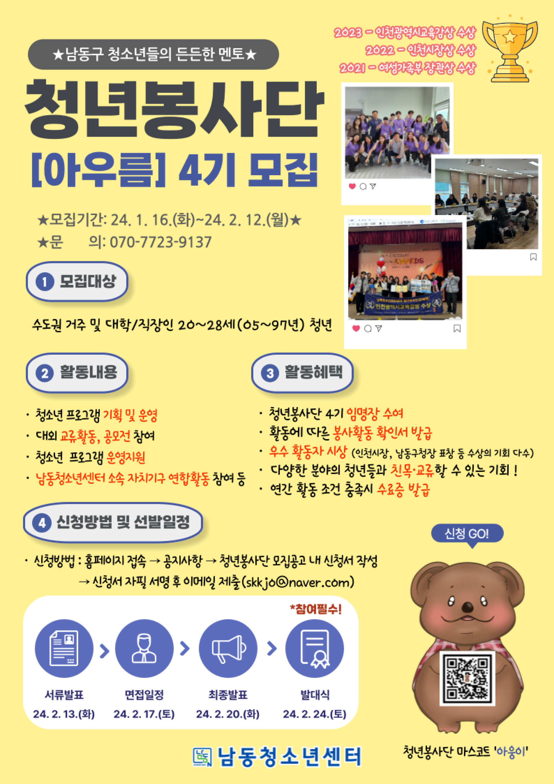 남동청소년센터 청년봉사단 '아우름' 4기 신규 단원 모집