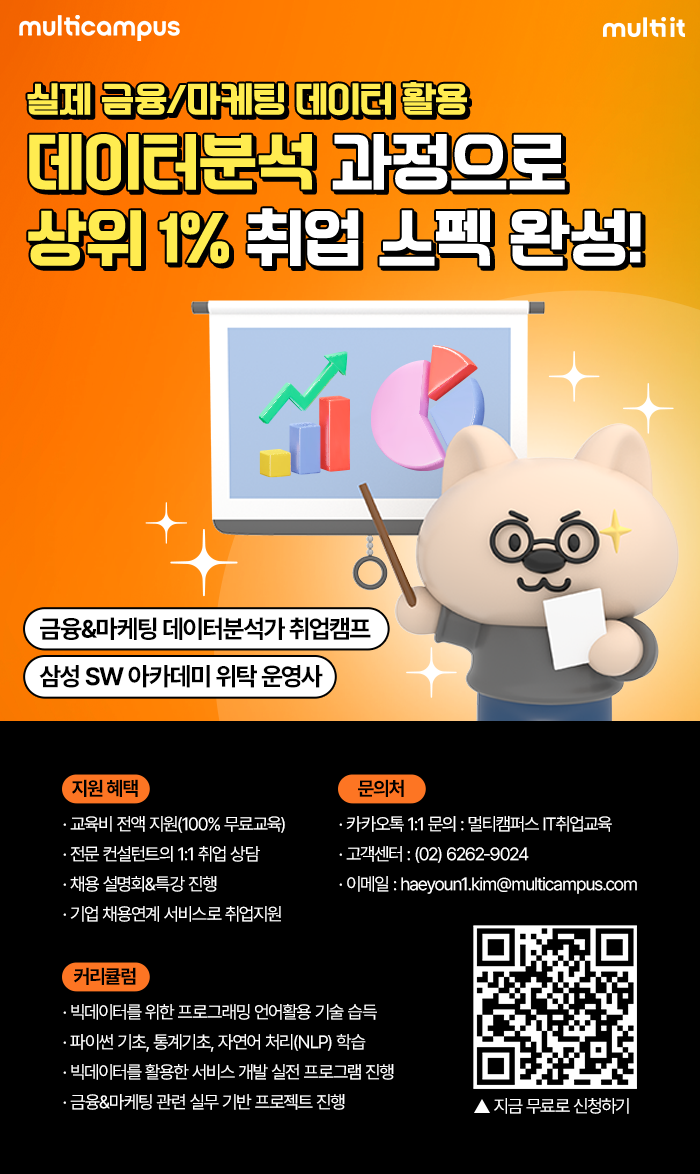 - 카카오톡 ‘멀티캠퍼스 IT취업교육’ / ☏ 1544-9901