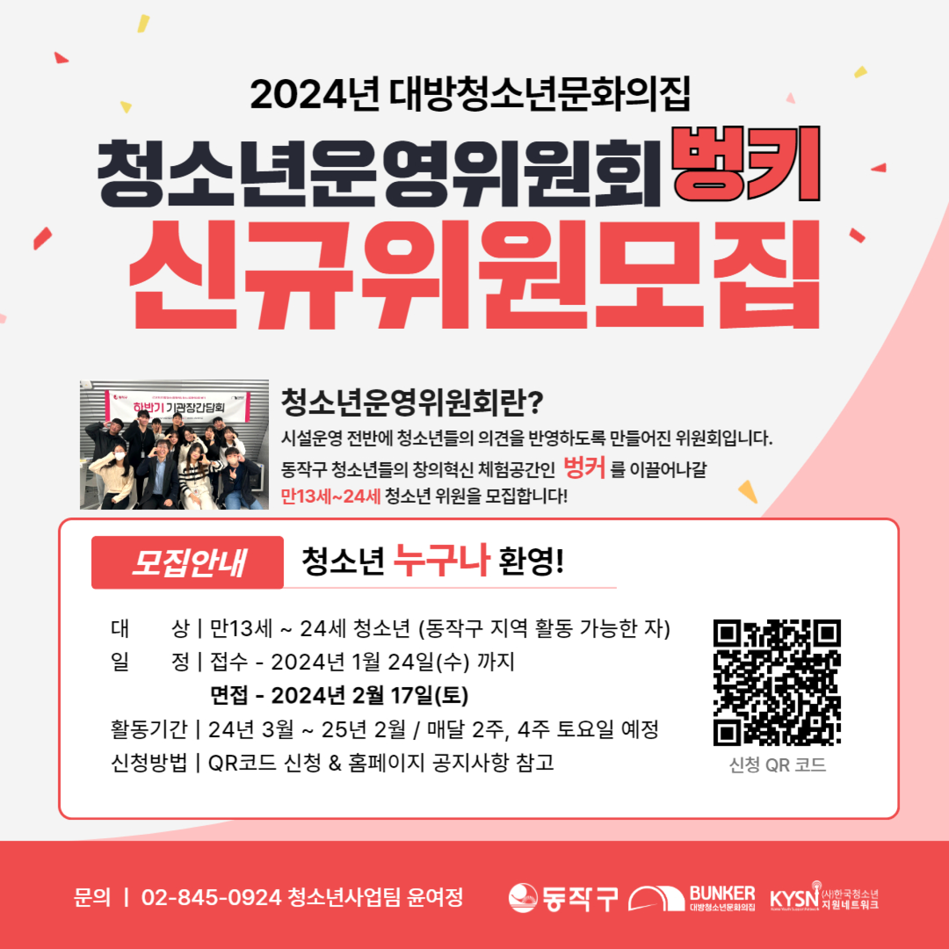 대방청소년문화의집 청소년운영위원회 ‘벙키 3기’ 모집