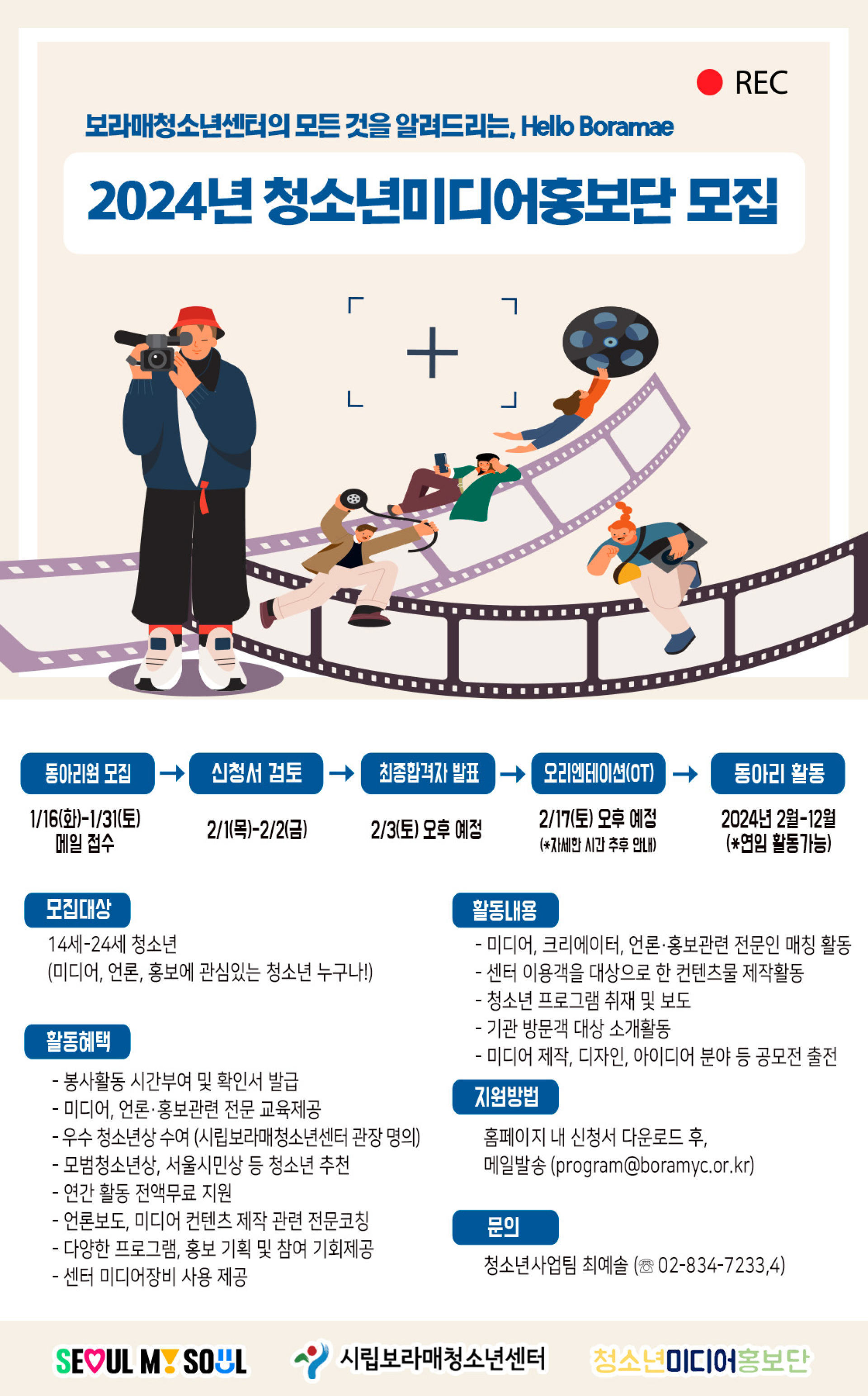 - 시립보라매청소년센터 청소년사업팀 최예솔 ☏ 02-834-7233,4