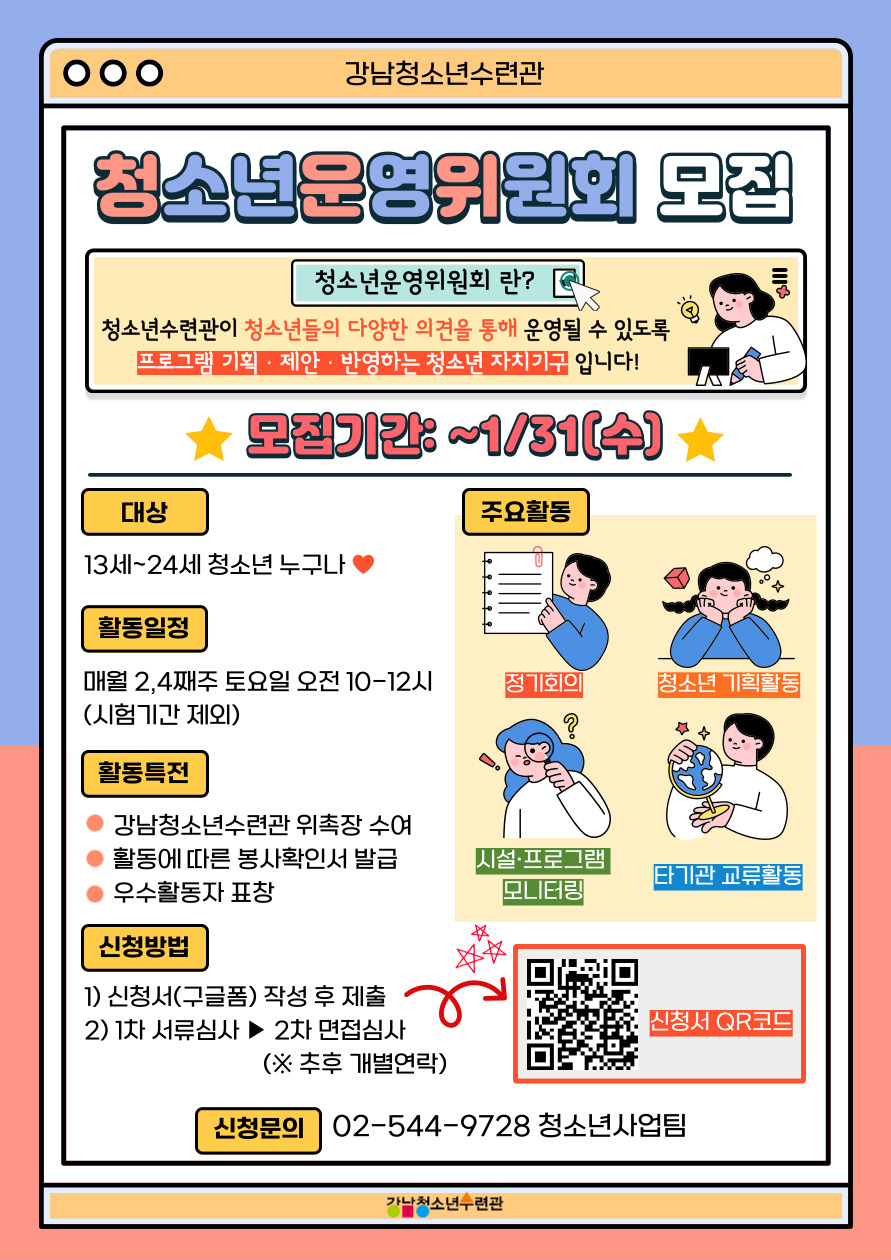강남청소년수련관 2024년 청소년운영위원회 '그리고&' 신규위원 모집