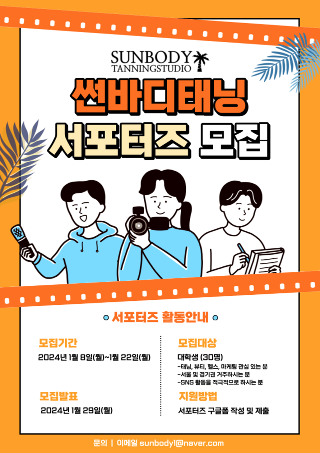 - 썬바디태닝 서포터즈 1기를 모집합니다.