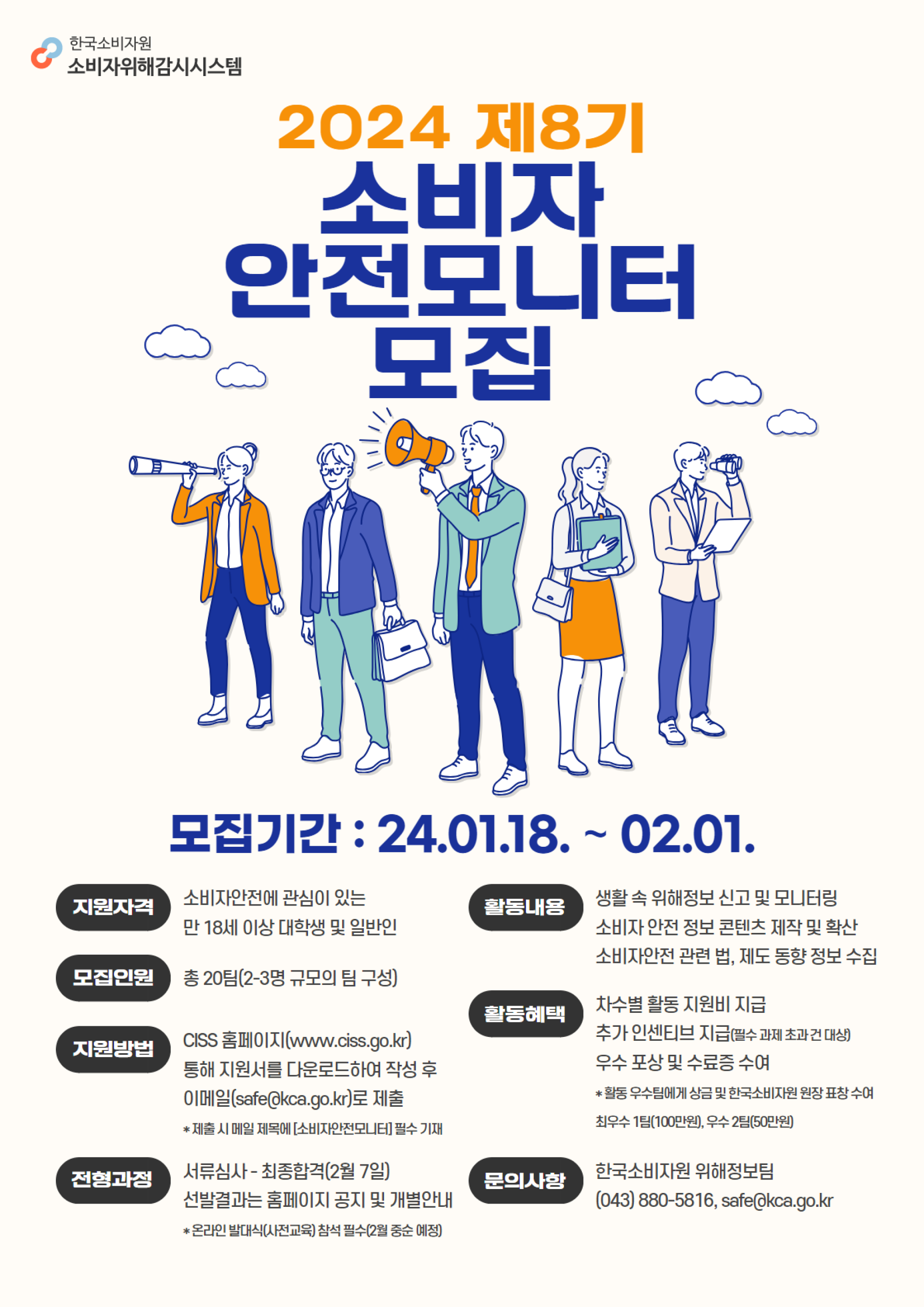 수집하고자 제8기 「소비자안전모니터」를 모집합니다.