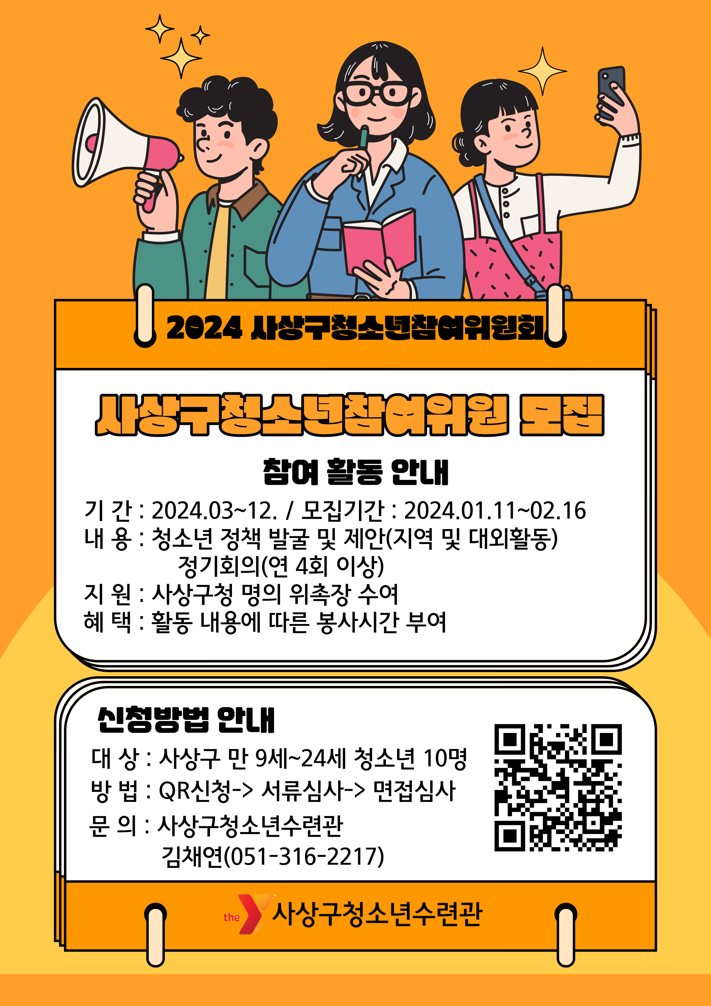 - 2024 사상구청소년참여위원회 분들을 모집하오니,