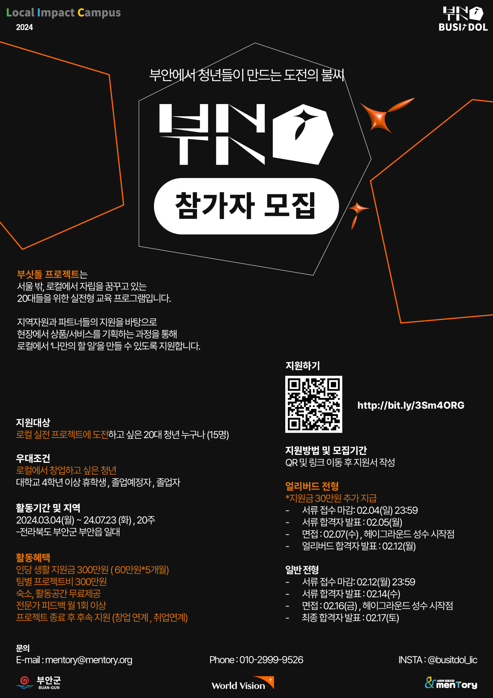 *부싯돌 1기는 부안군, 월드비전, 멘토리, mysc가 함께합니다.