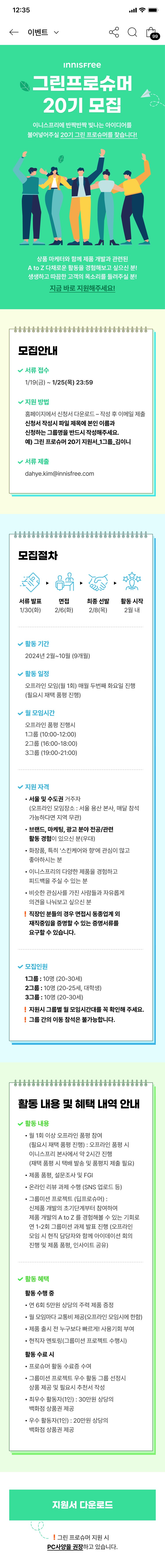 이니스프리 그린 프로슈머 20기 모집