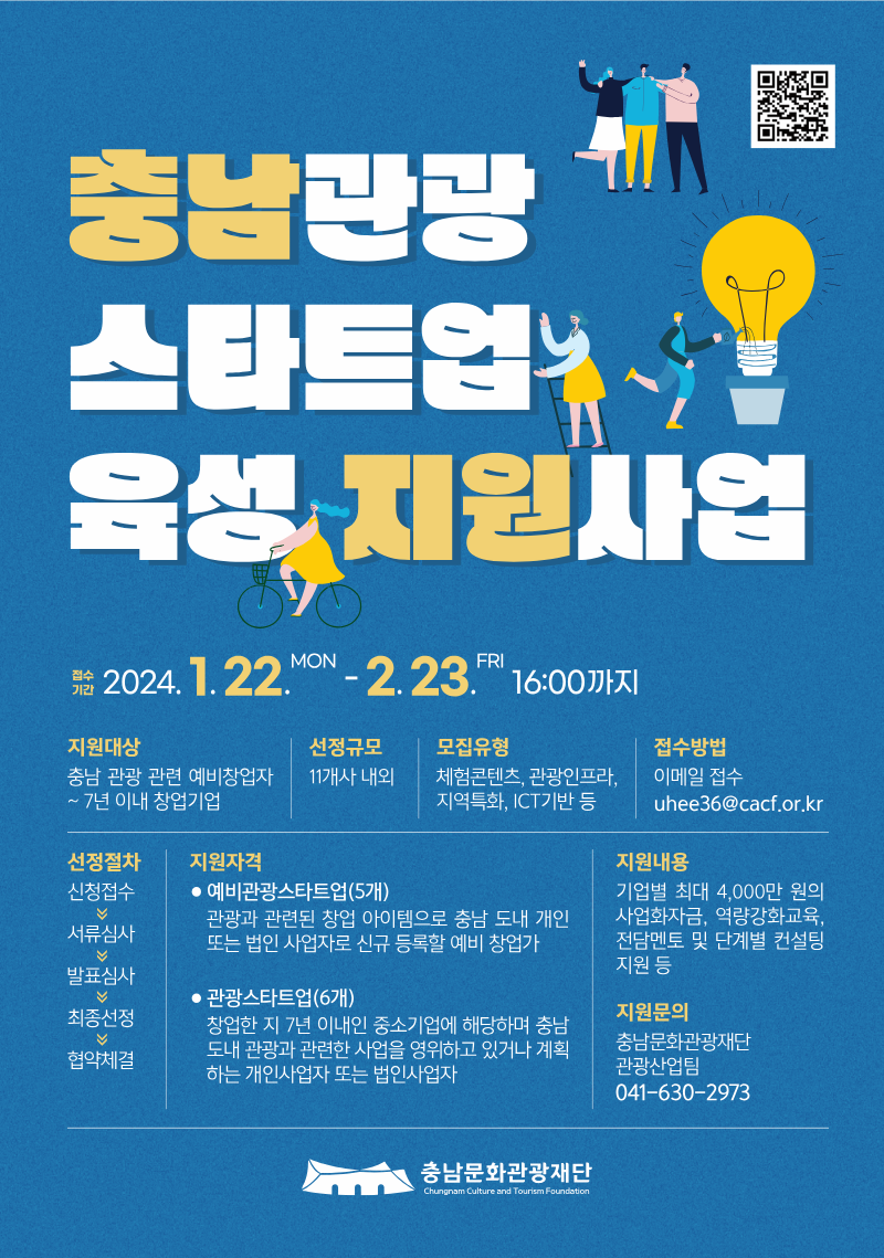 - 2024 충남관광 스타트업 육성지원사업」에 참여할 사업자 모집