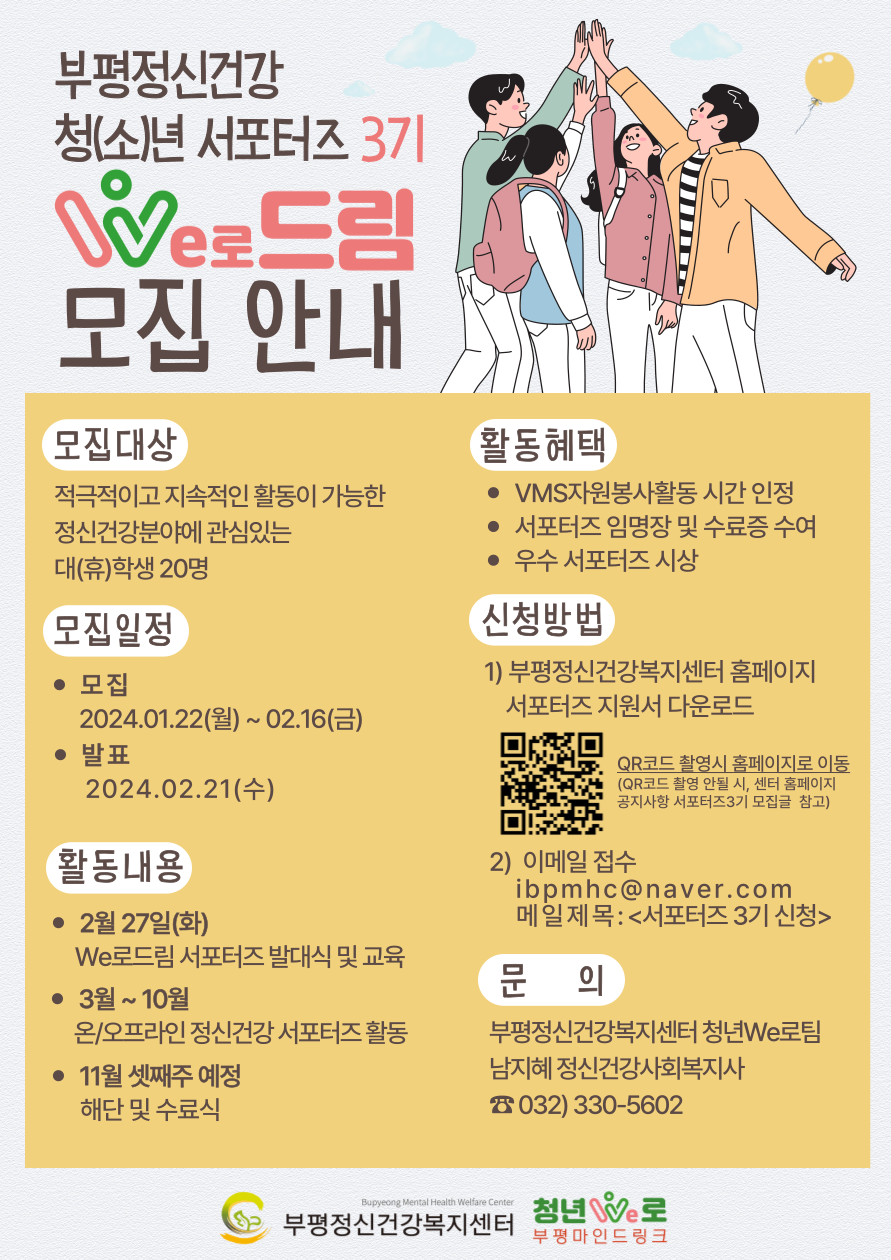 2024년 부평정신건강 청(소)년 서포터즈 We로드림 3기 모집