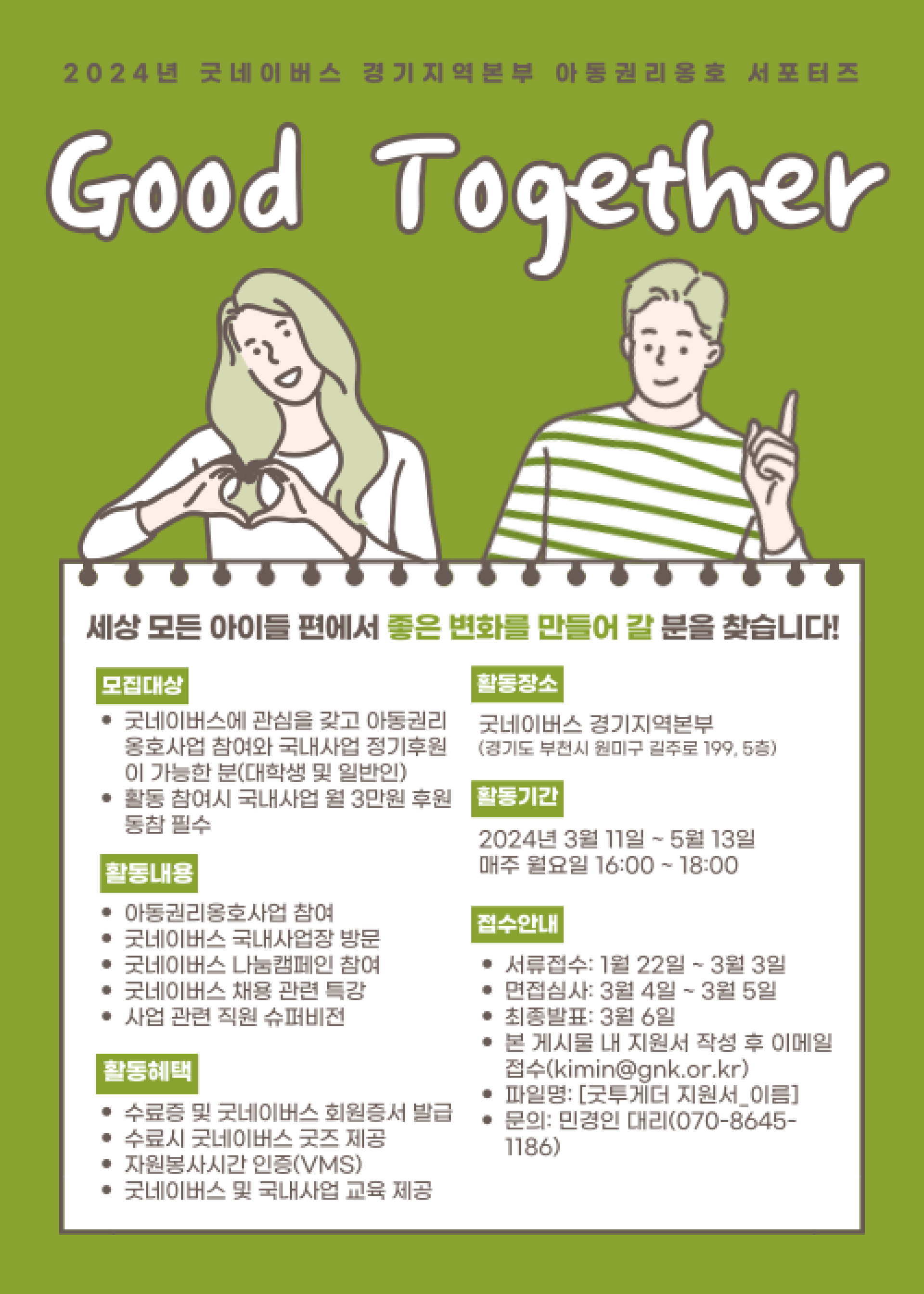 2024년 굿네이버스 경기지역본부 아동권리옹호 서포터즈 Good Together 모집