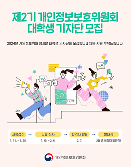 - 제2기 개인정보보호위원회 대학생 기자단을 모집합니다.