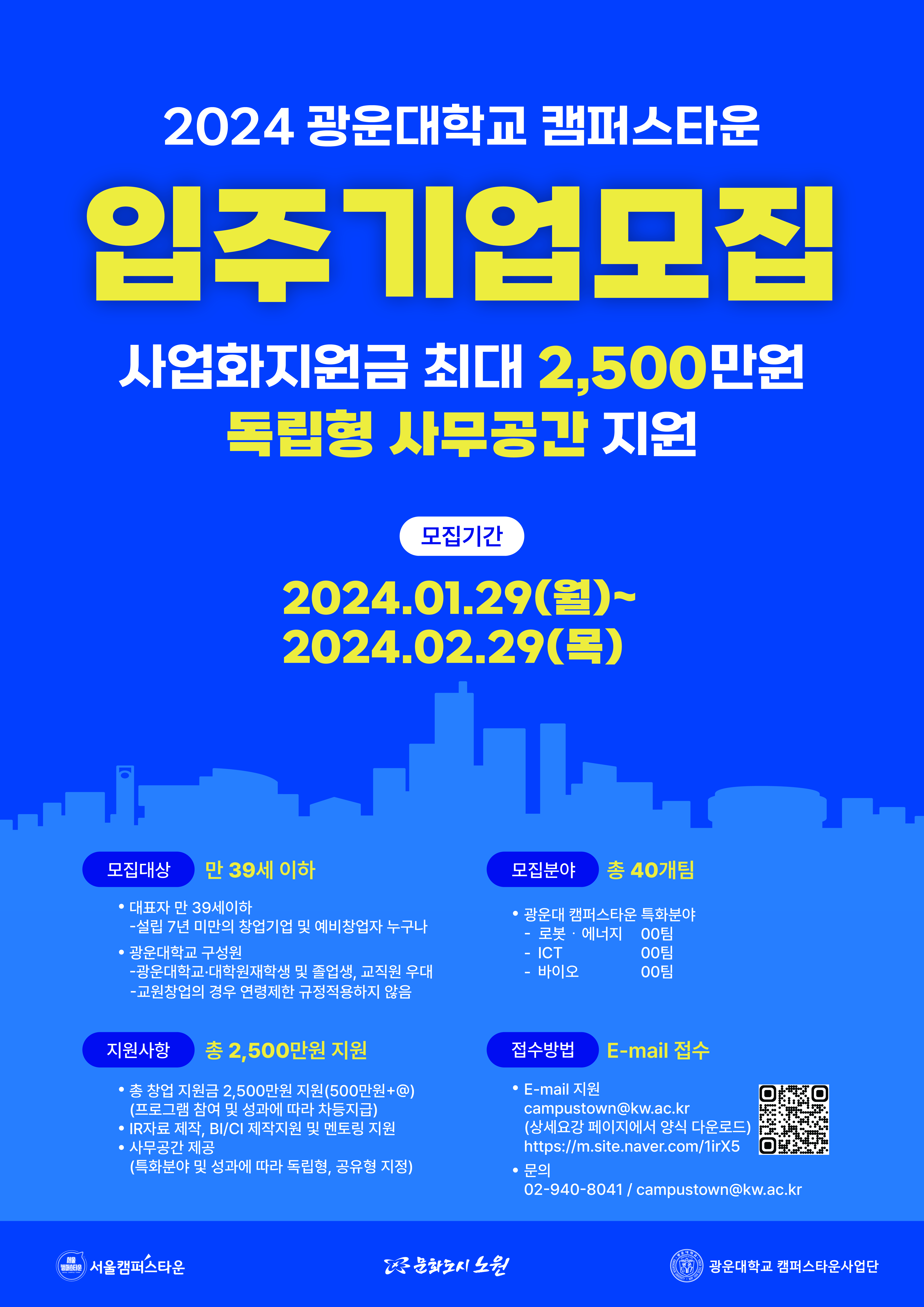 - 2024년 광운대학교 캠퍼스타운 입주기업을 모집합니다.