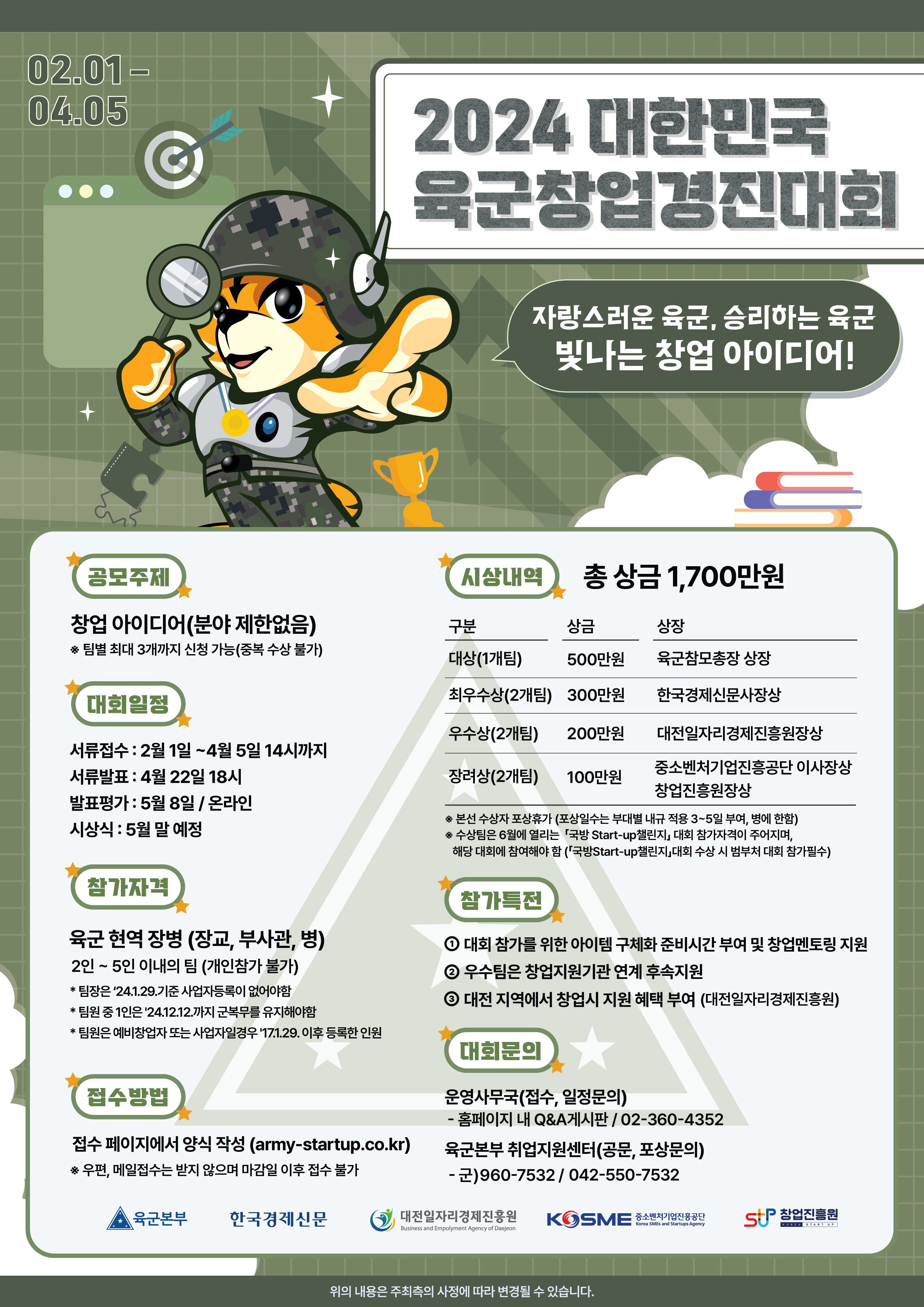 | 시상내역 | 총 상금 1,700만원 / 육군참모총장상 外 |