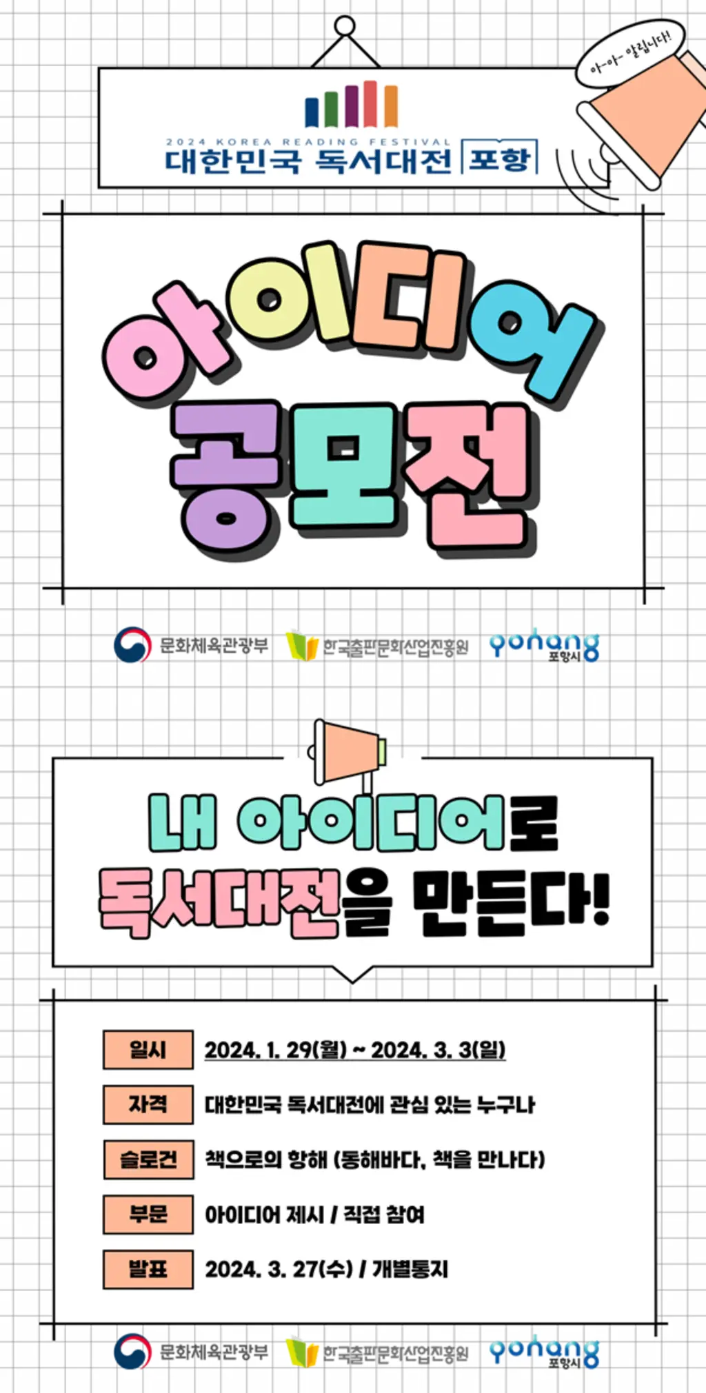 - 2024 대한민국 독서대전 포항 아이디어 공모전을 개최하오니