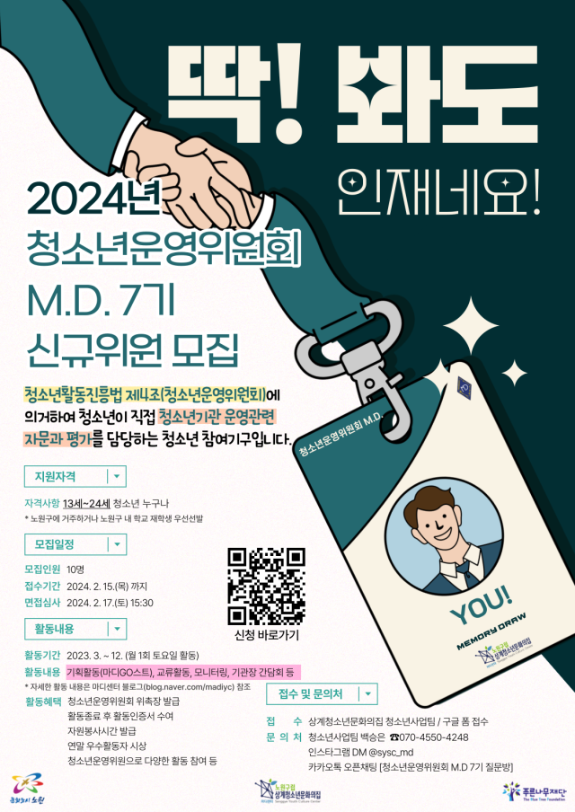2024년 청소년운영위원회 M.D 7기 신규위원 모집