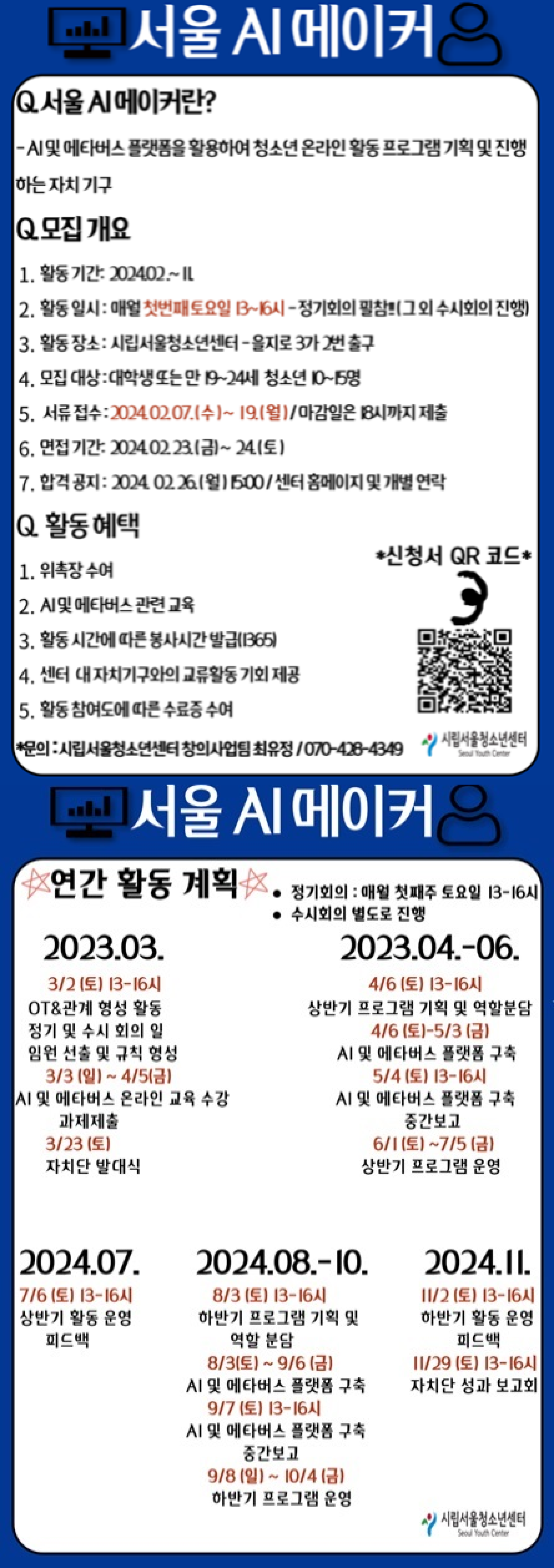 - 시립서울청소년센터에서 서울 AI 메이커 자치단을 모집하오니