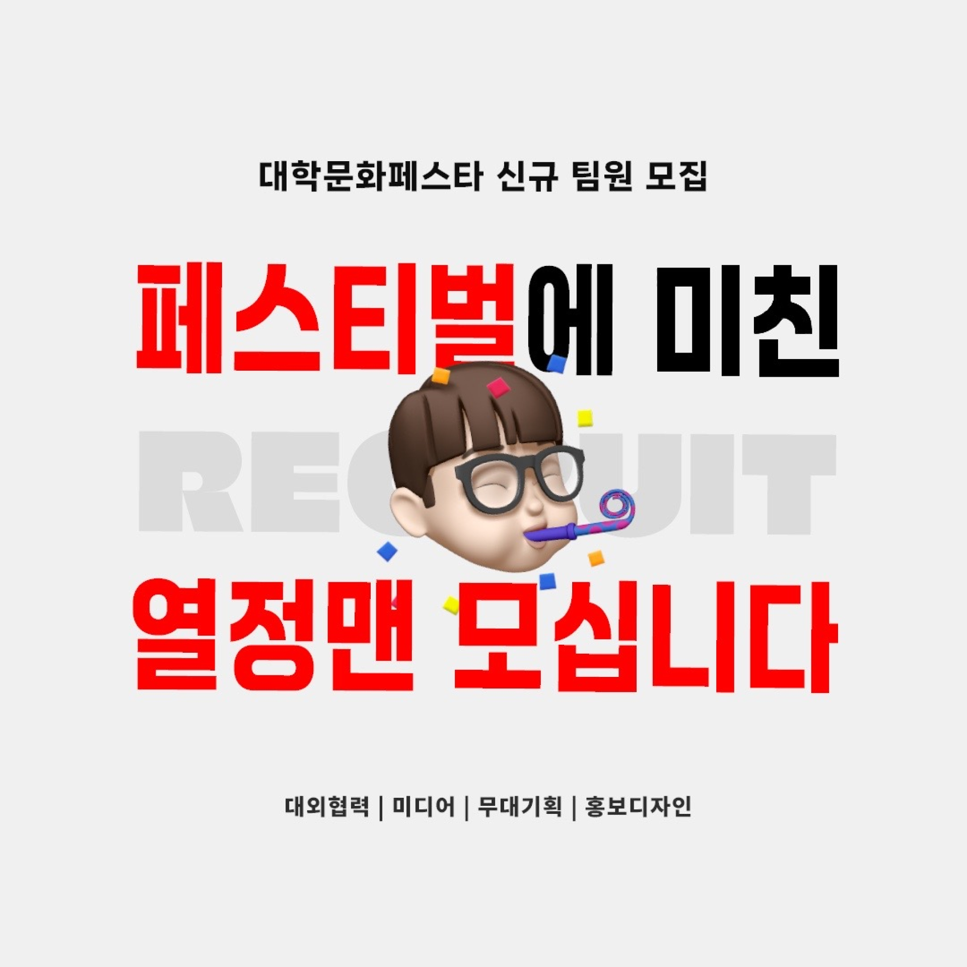 대학문화페스타에서 신규팀원을 모집하오니 많은 지원 부탁드립니다:)
