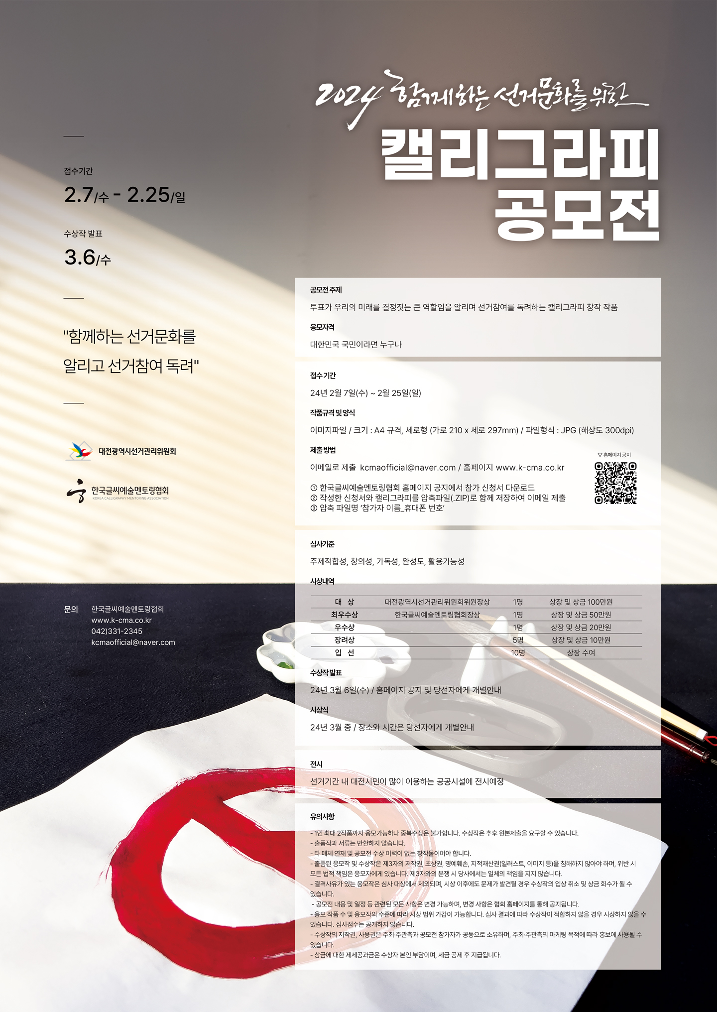 - 2024 함께하는 선거문화를 위한 캘리그라피 공모전을 개최하오니