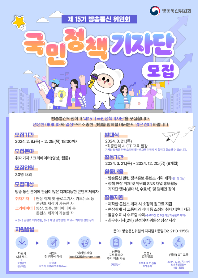 방송통신위원회 제15기 국민 정책기자단 모집